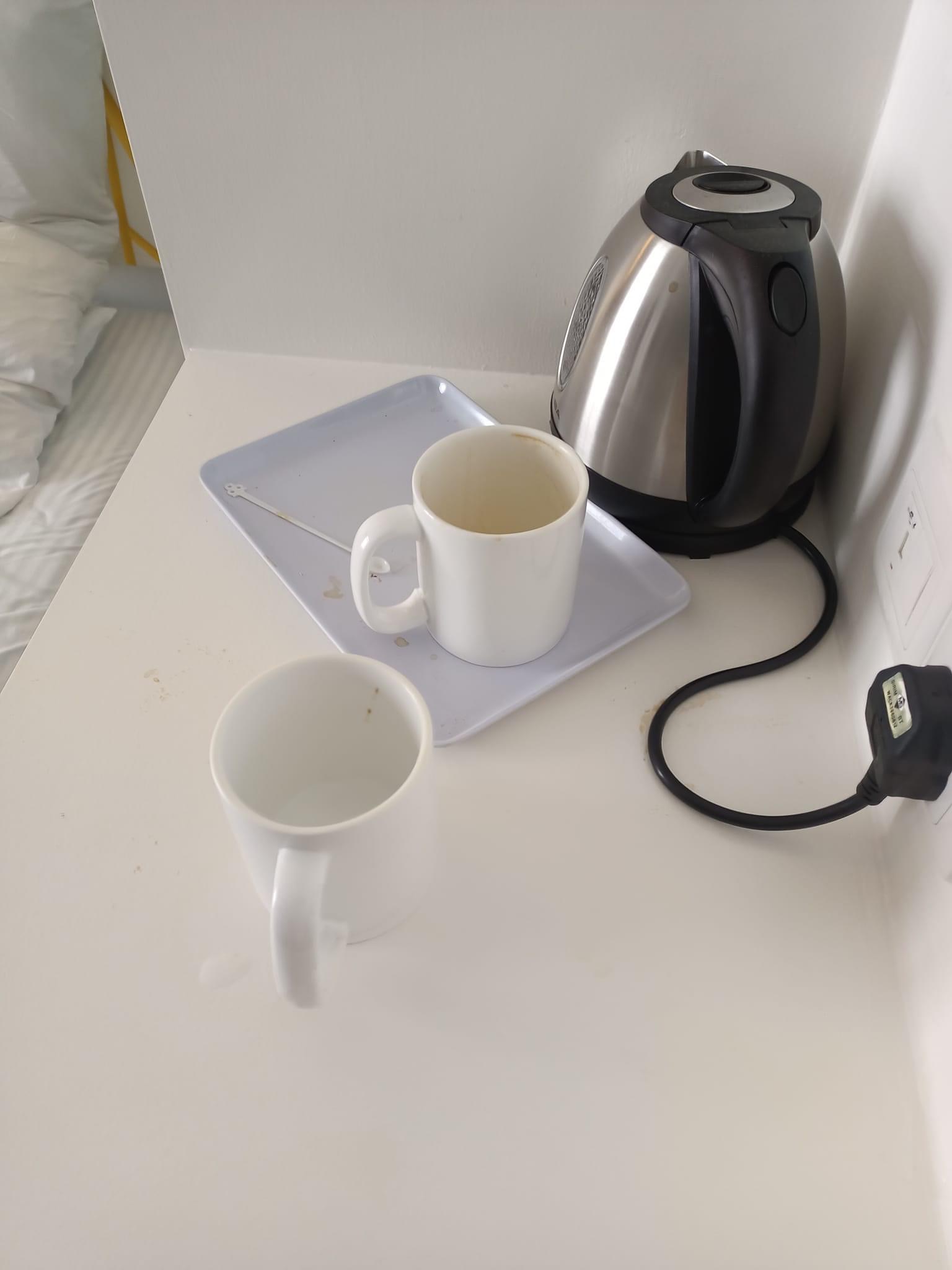 一开门看到这样的房间,我晕掉。打电话去 room service,她说他们现在没有整理房间,整理房间都是4天一次,只可以送些卫生纸,毛巾之类的东西。就是不会帮你整理房间。