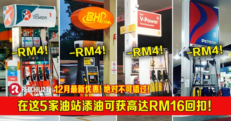12月最新优惠!在这5家油站添油可获高达RM16回扣!