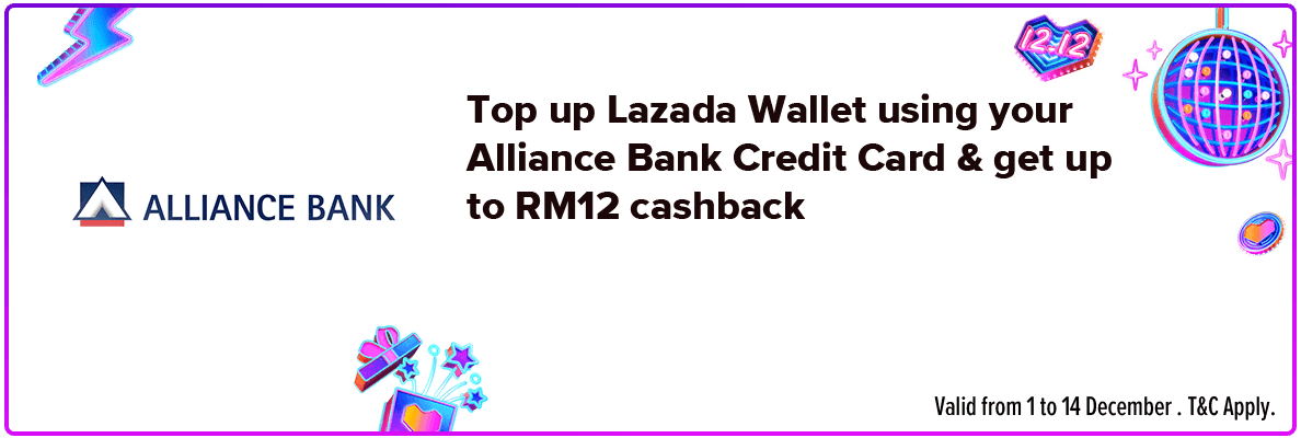 ▼ 使用Alliance Bank 信用卡充值Lazada Wallet 可获得RM12 回扣