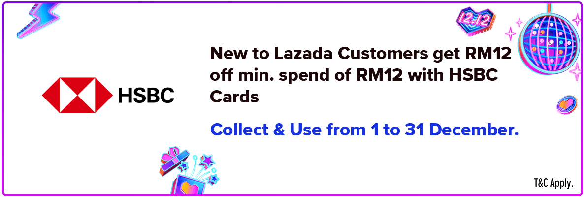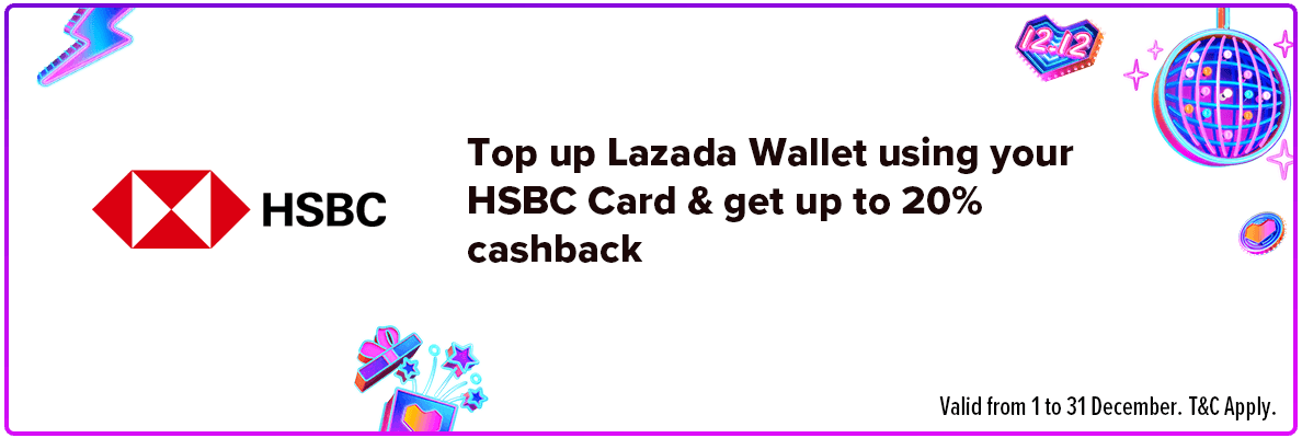 ▼ 使用HSBC Card 充值Lazada Wallet 可获得20% 现金回扣;(新用户)充值最低RM10 可获得RM10 现金回扣