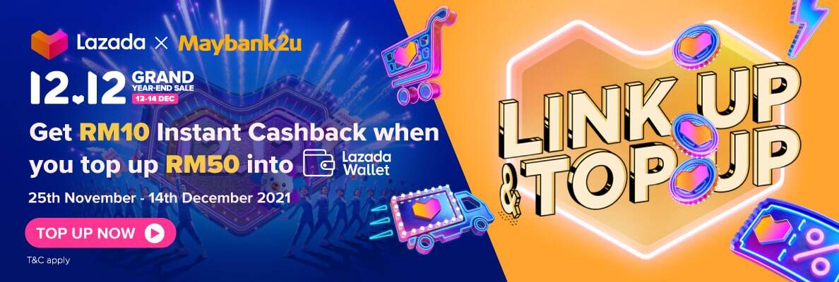 ▼ 使用Maybank2u 充值RM50 及绑定Lazada Wallet,可获得RM10 现金回扣