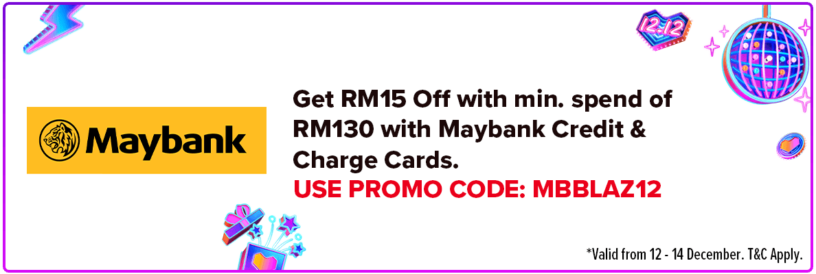 - 结帐时必须输入优惠码【MBBLAZ12】才能享有RM15 折扣