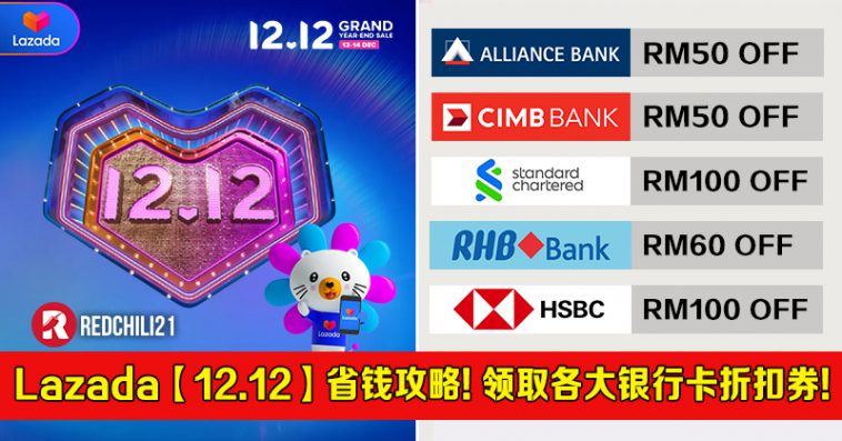 只要你从12月12日至14日,通过Lazada 网购平台消费并使用各大银行卡来付款,可享有高达RM100 折扣!那么我们来看看有哪些参与的银行卡吧!