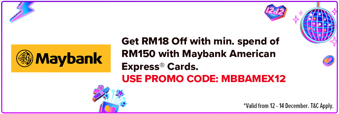 - 结帐时必须输入优惠码【MBBAMEX12】才能享有RM18 折扣