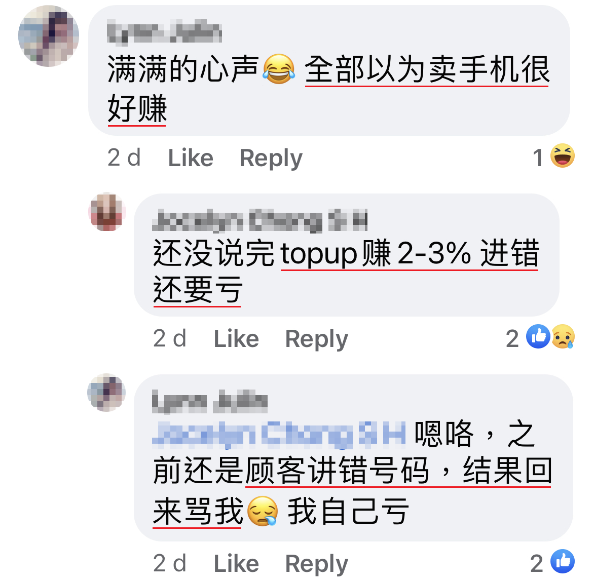 更惨不忍睹的是 Reload Top-up 卡,订几千块钱的卡来卖,只为了不到2%的利润,RM10 一张 Reload 赚少过两毛钱,比路边摊卖香蕉糕的小贩更不如!偶尔系统有问题,进不到钱,肯定又被屌了!