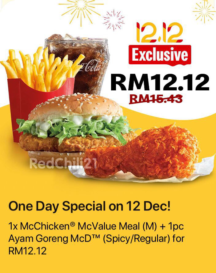 McDonald’s【12.12】炸鸡汉堡套餐只需RM12.12!优惠只限一天!