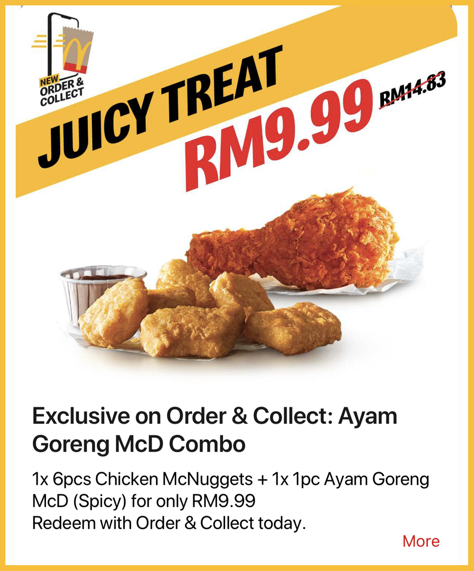 ※ 套餐包含:6块Chicken McNuggets + 1块Ayam Goreng McD(Spicy/Regular)