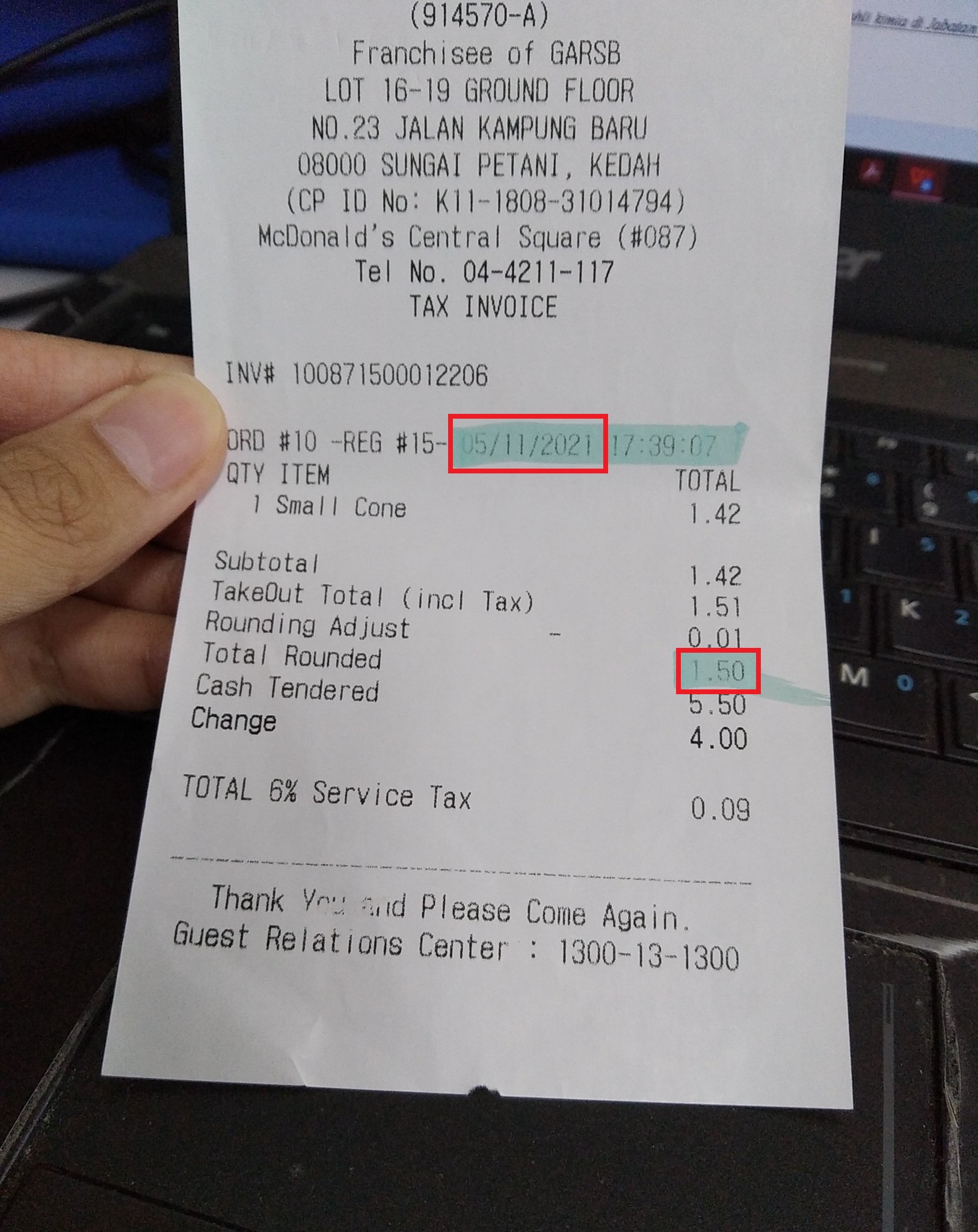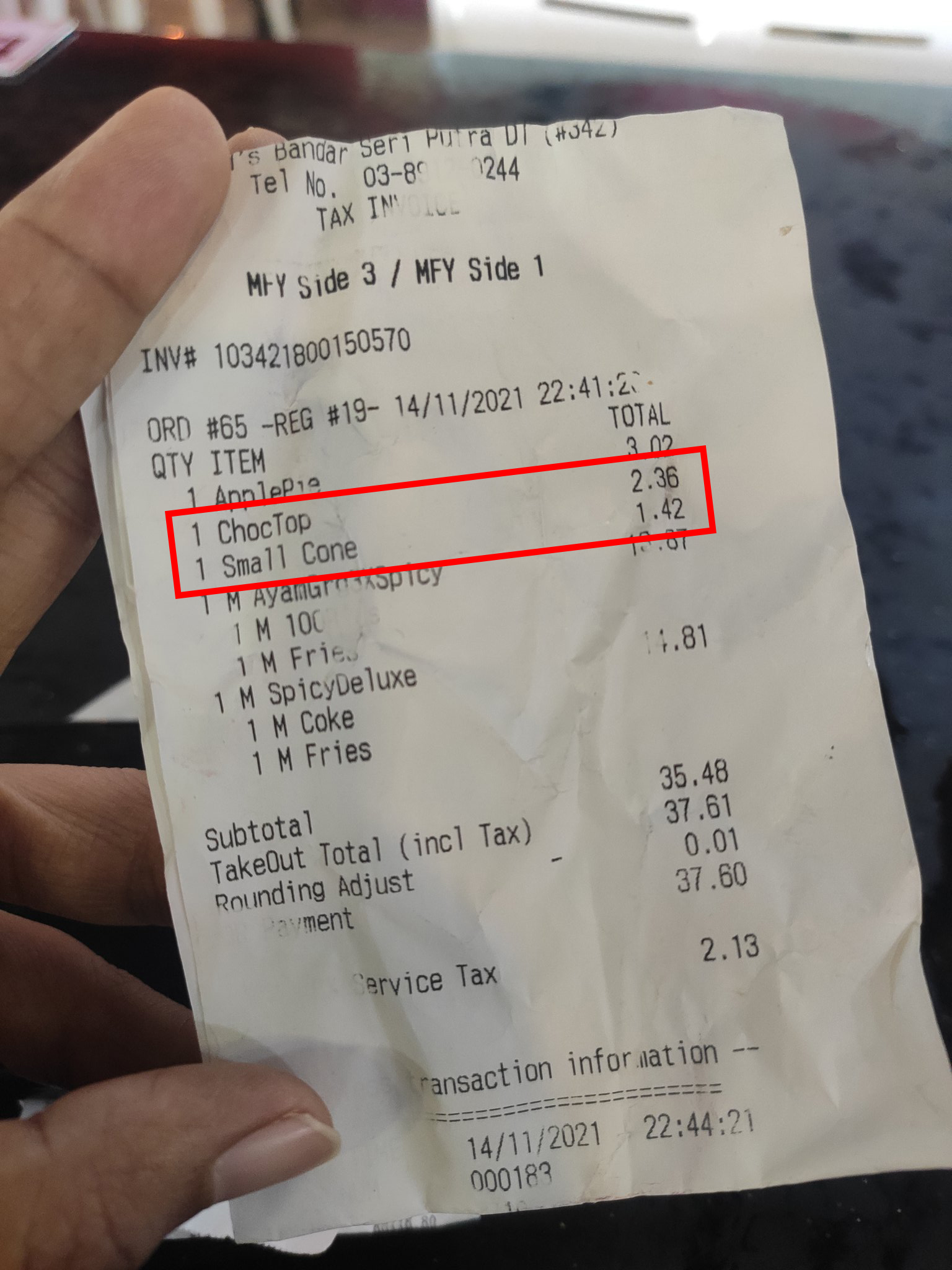 ▼ 买的时候还没发现,看回当天的单据才惊觉!