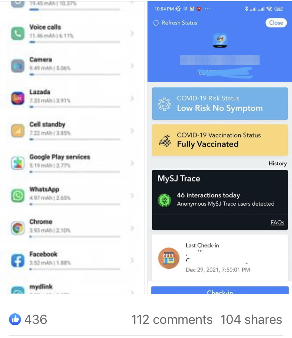 今天我第一次用新版本 MySejahtera 的蓝牙追踪。想告诉大家的是,开启 Location 以及 Bluetooth 耗电量是很少的。