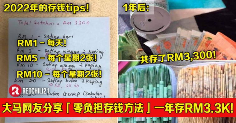持续用这样的方式存钱,一年以后可以存到的总数:RM3,300。