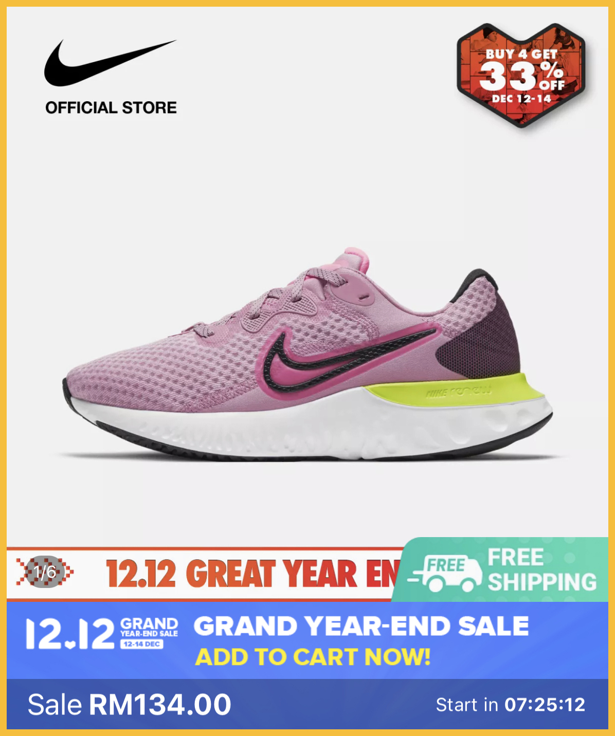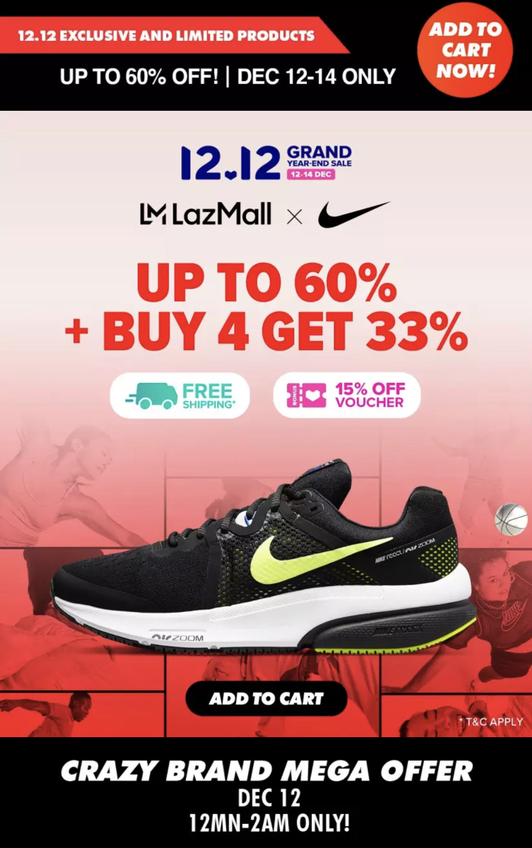 双十二买新的运动鞋/运动装也很值得!大马 Nike 在 Lazada 官方网店推出12.12疯狂大优惠!多样商品折扣高达60%,购买4件以上还可获额外33%折扣!