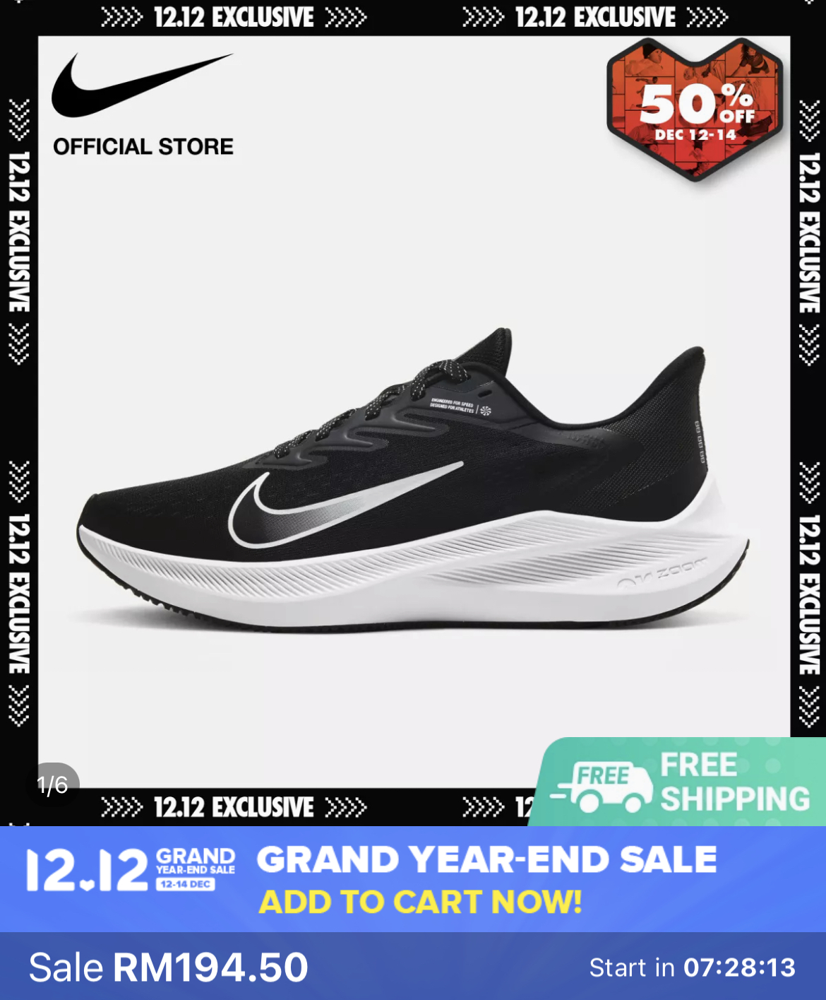▼ Nike Women’s Air Zoom Winflo 7 Running Shoes – Black(原价:RM389.00)