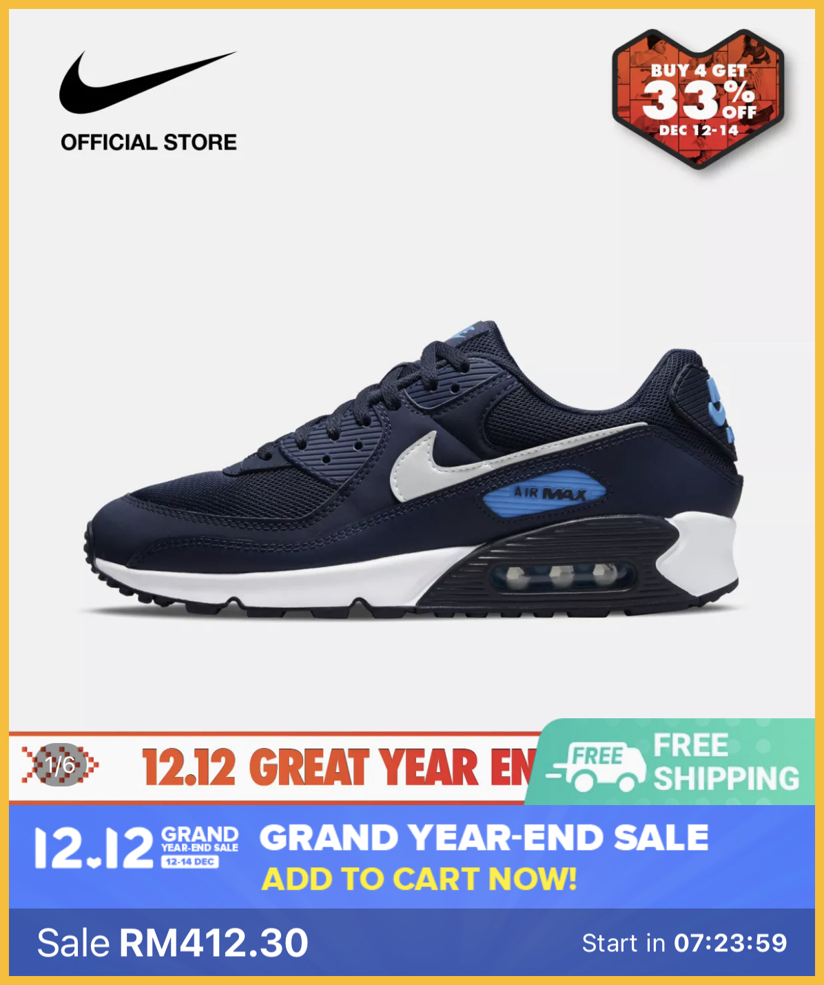 ▼ Nike Men’s Air Max 90 Shoes – Obsidian(原价:RM589.00)