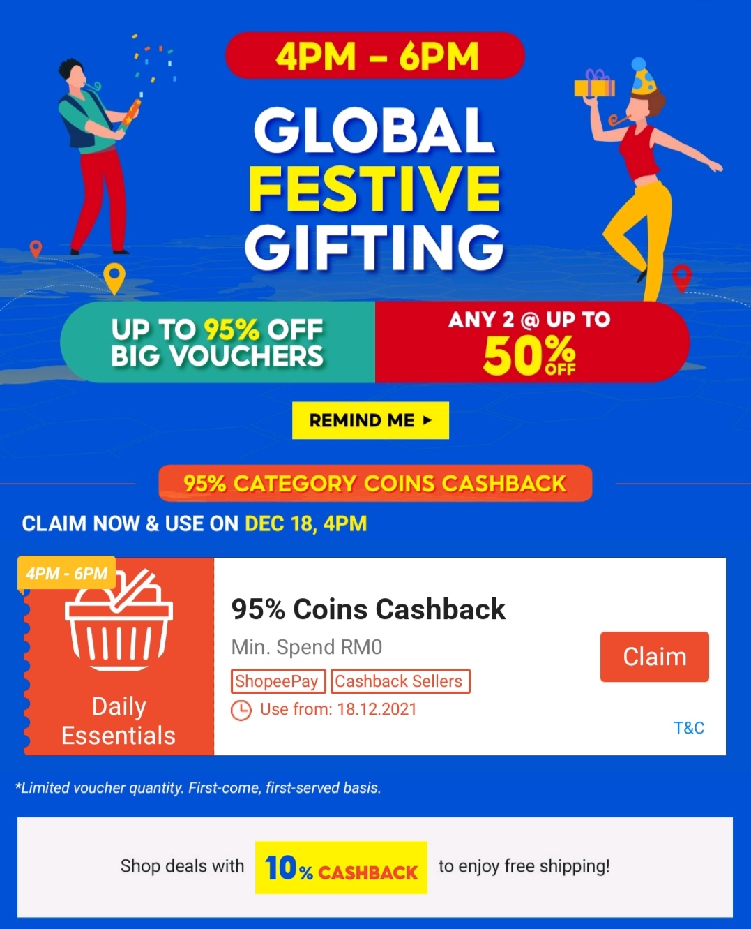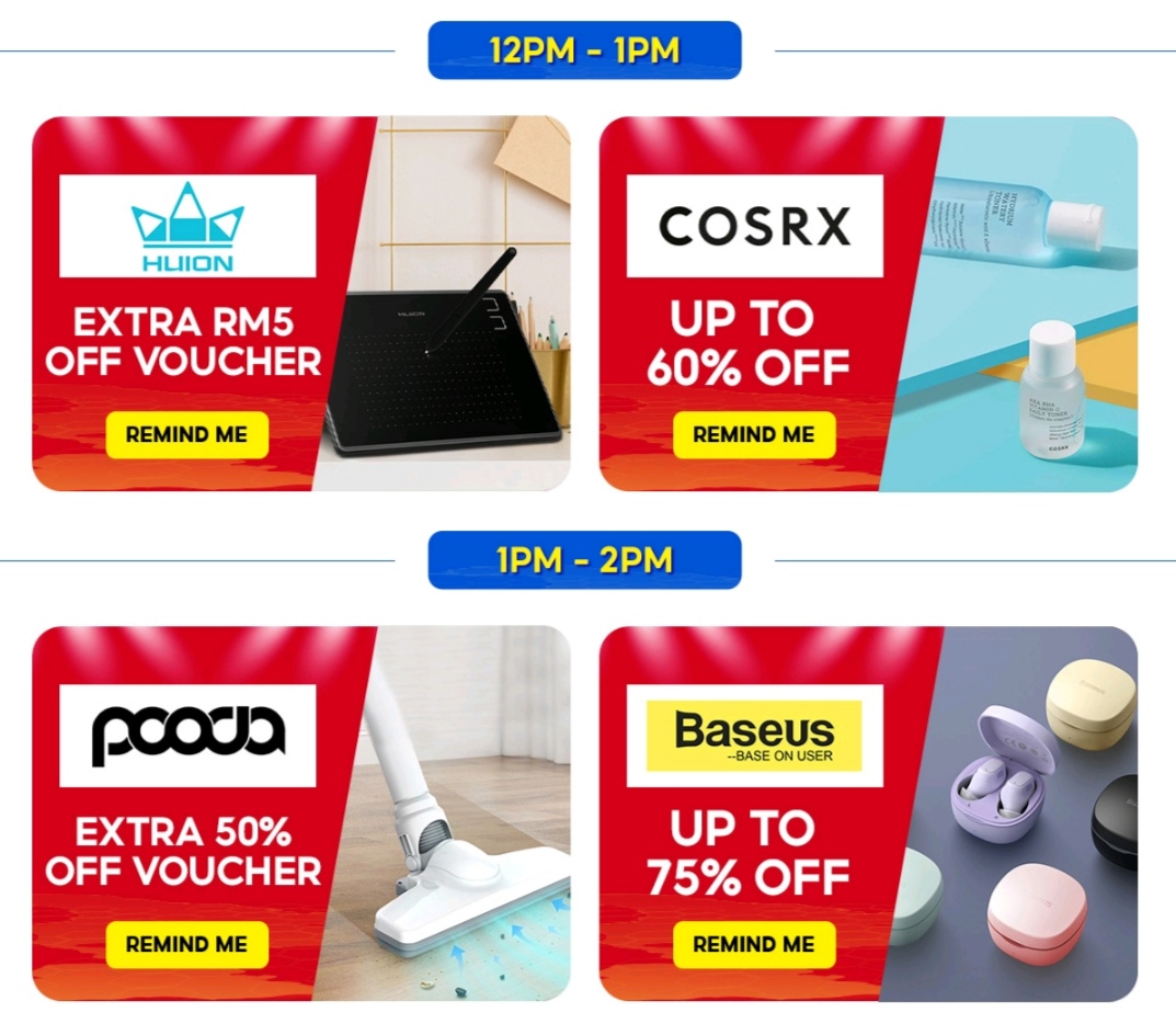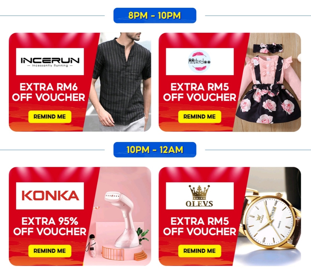 ii)在这2个小时限时优惠内,可领取最低RM0 & RM5 免邮券 + 50%币回扣券!