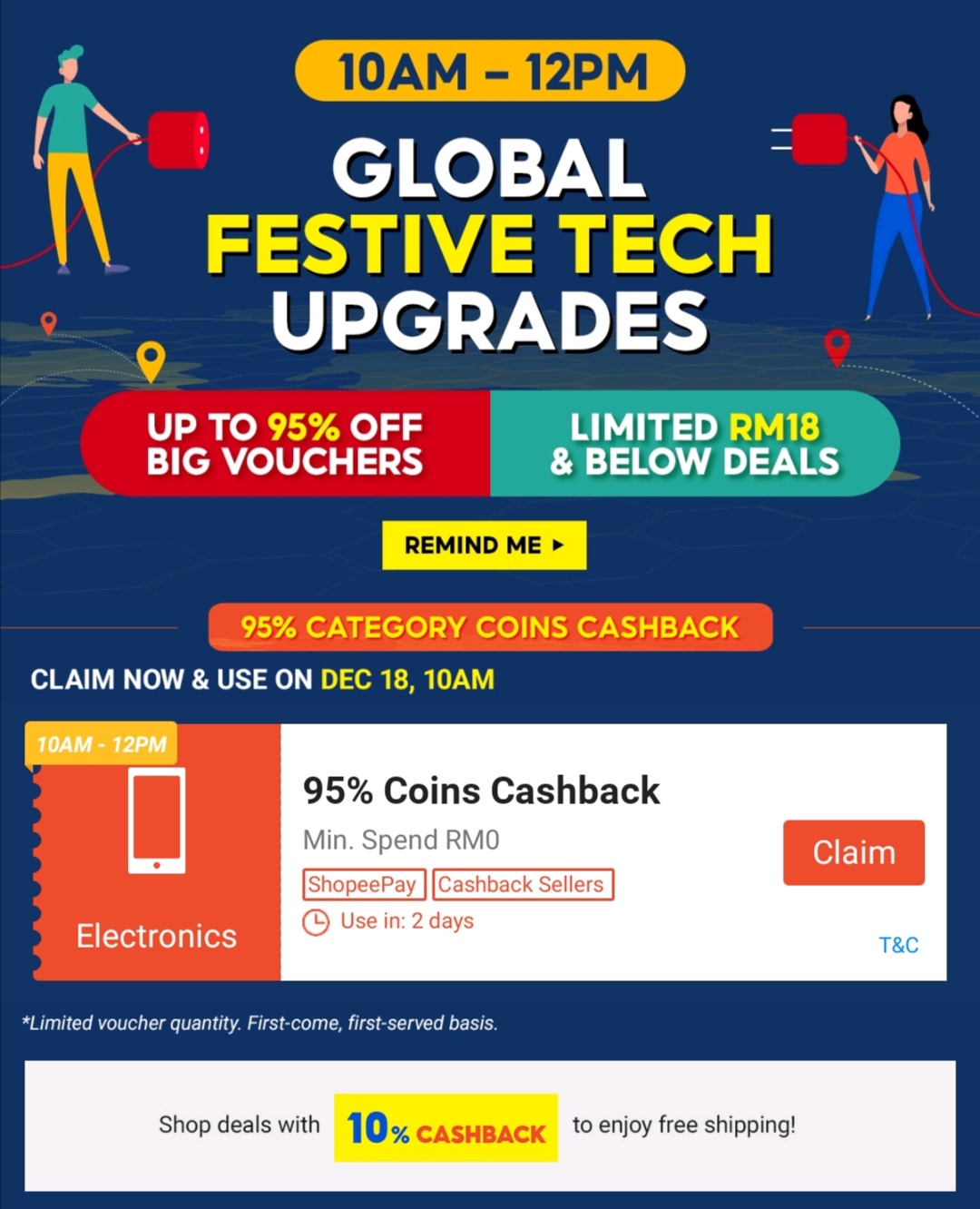 ii)10am 至12pm 推出电子产品95%Shopee 币回扣券!