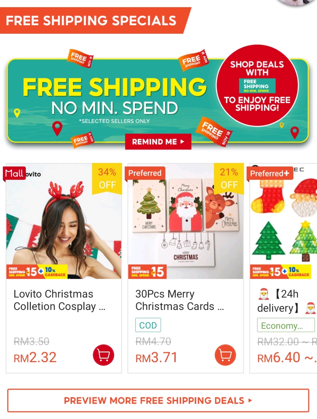 ii)别忘了,领取以下4张免邮券,最低消费RM0 & RM5!