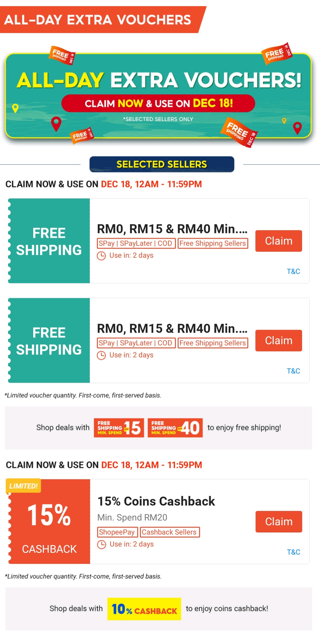 爱网购的朋友,绝对不可错过Shopee 推出任何一张优惠券啦!这些优惠券只限在12月18日当天使用!数量有限,先用先得!