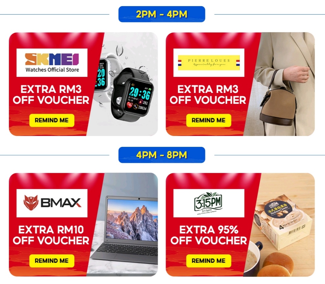 iv)4pm 至6pm 这2个时段推出95%杂货折扣券!