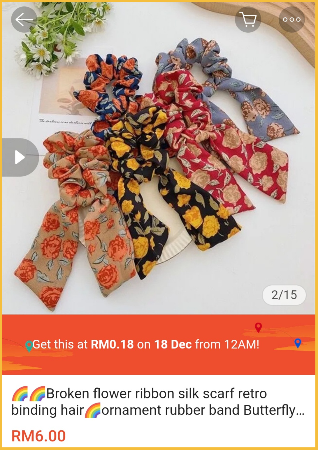 ▪Flower Ribbon Silk Scarf Retro Binding Hair – RM6 RM0.18
