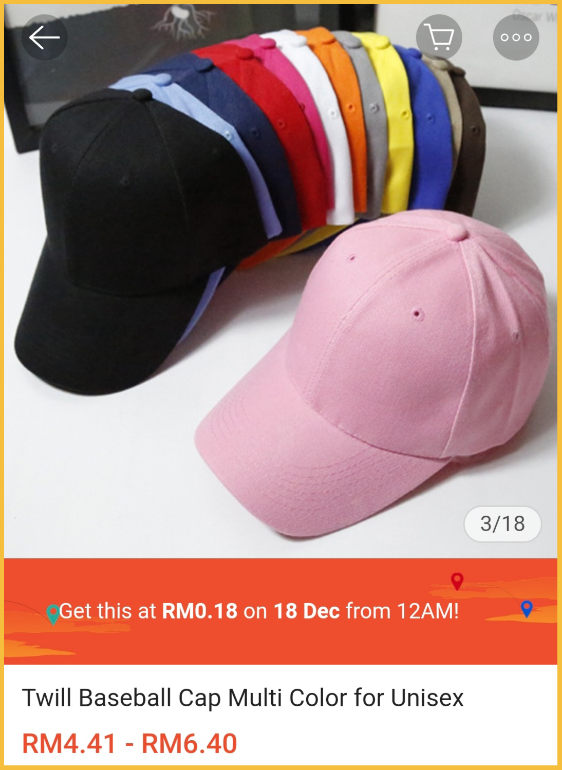 ▪Twill Baseball Cap Multi Color for Unisex – RM6.40 RM0.18