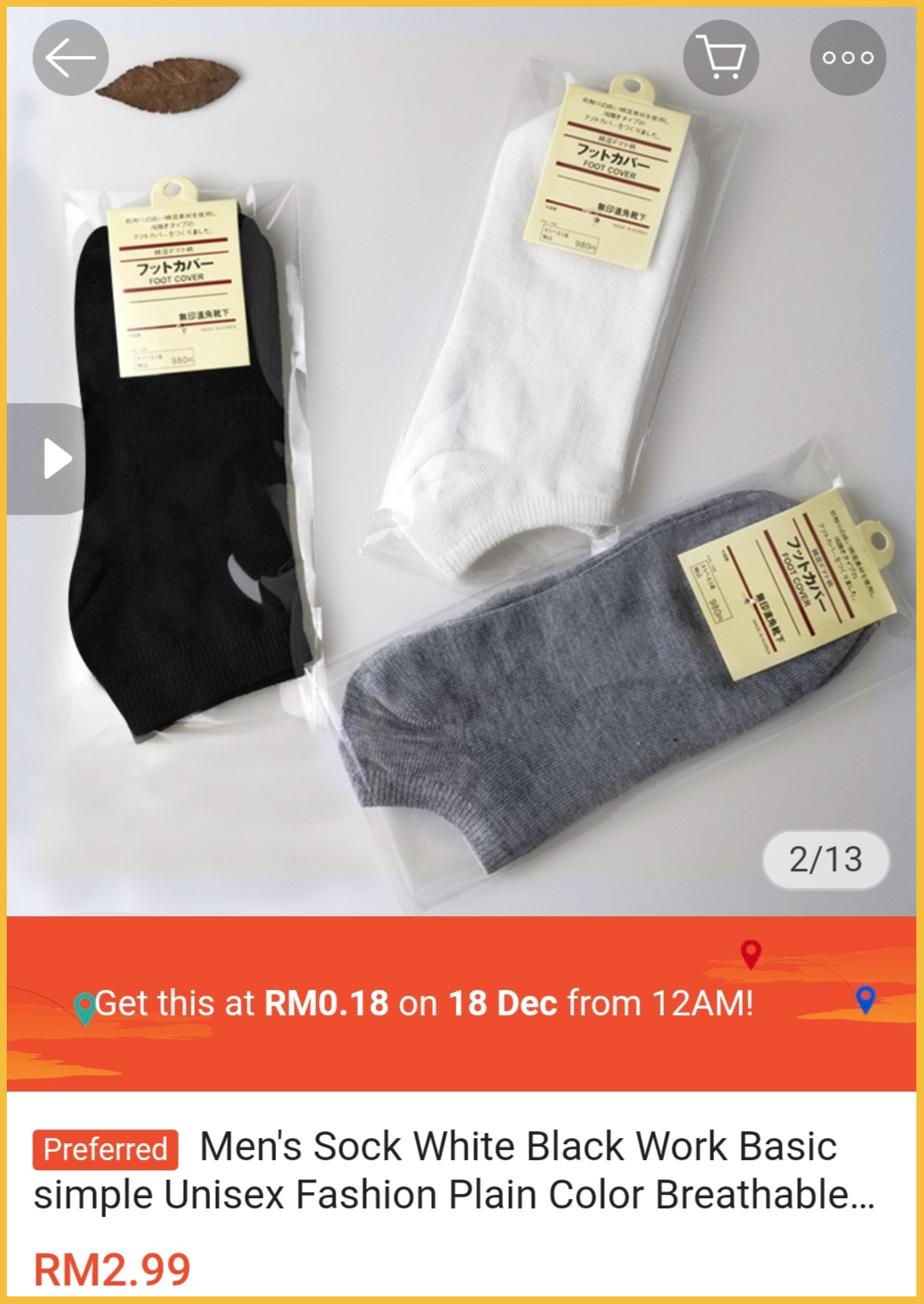 ▪Unisex Basic simple Sock – RM2.99 RM0.18