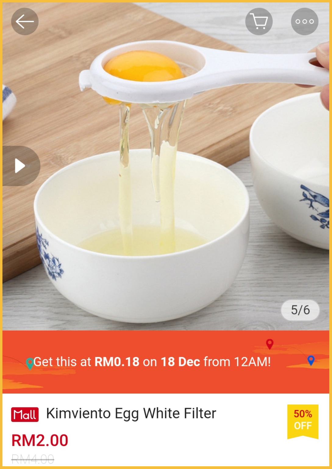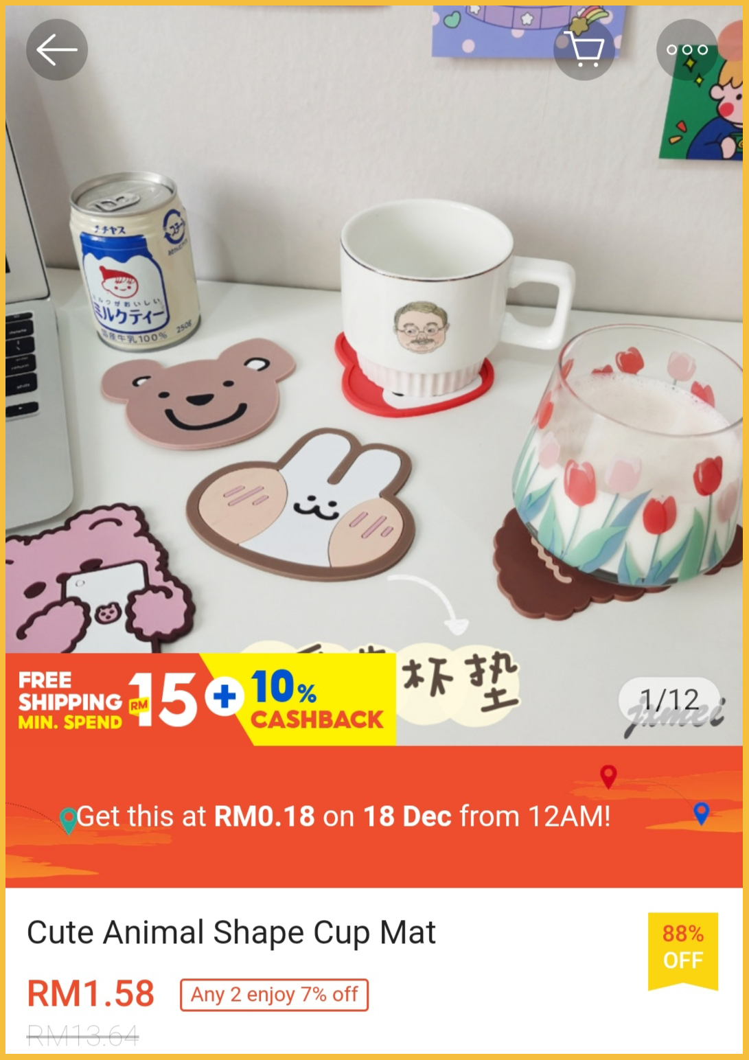并且多达12样超值商品,像是卡通防滑杯垫、蛋清过滤器、Unisex 袜子、虎年红包封等统统只需RM0.18!只要你在凌晨12am 至2am 时段抢购,就可享有特价优惠!