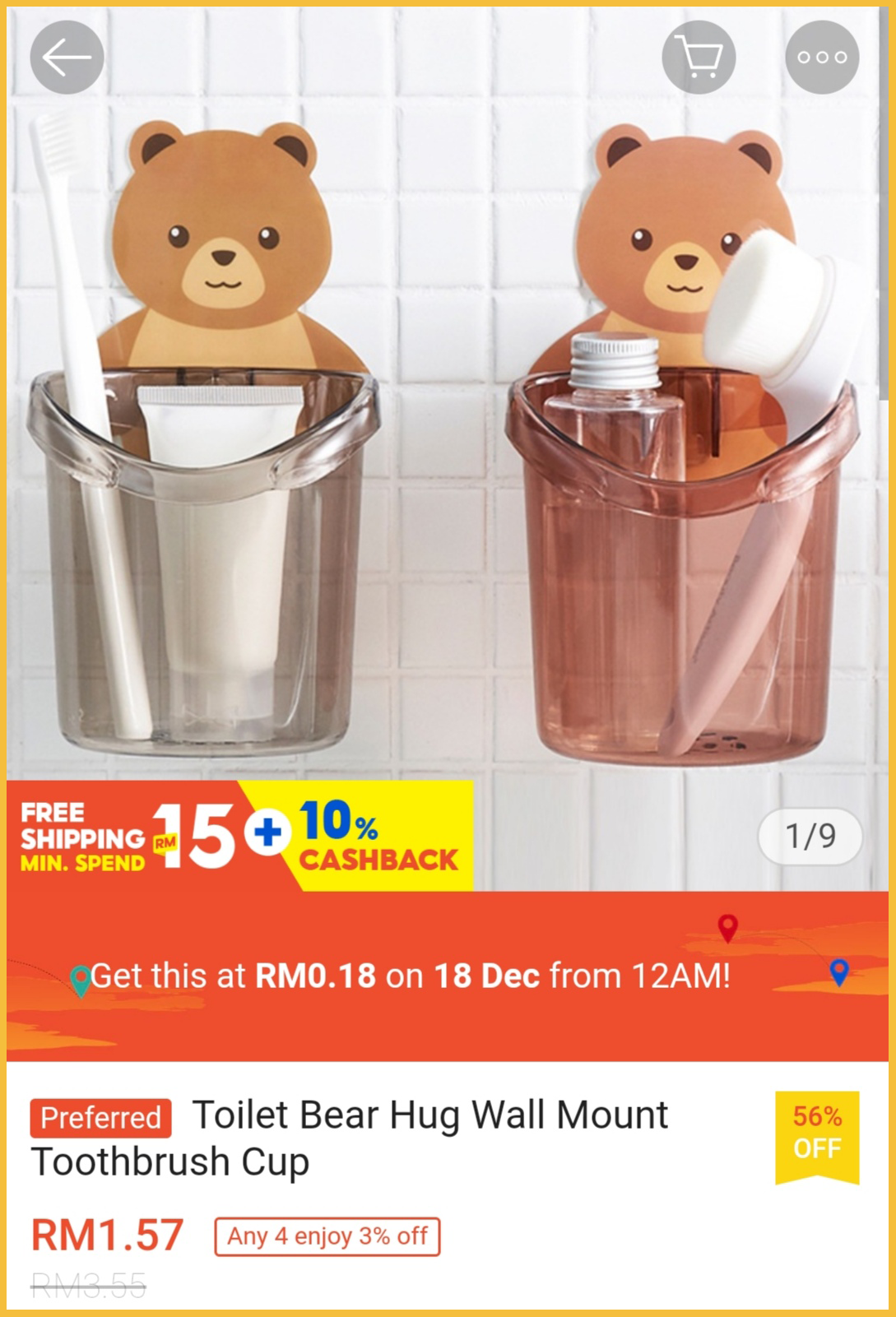 ▪Toilet Bear Hug Wall Mount Toothbrush Cup – RM1.57 RM0.18