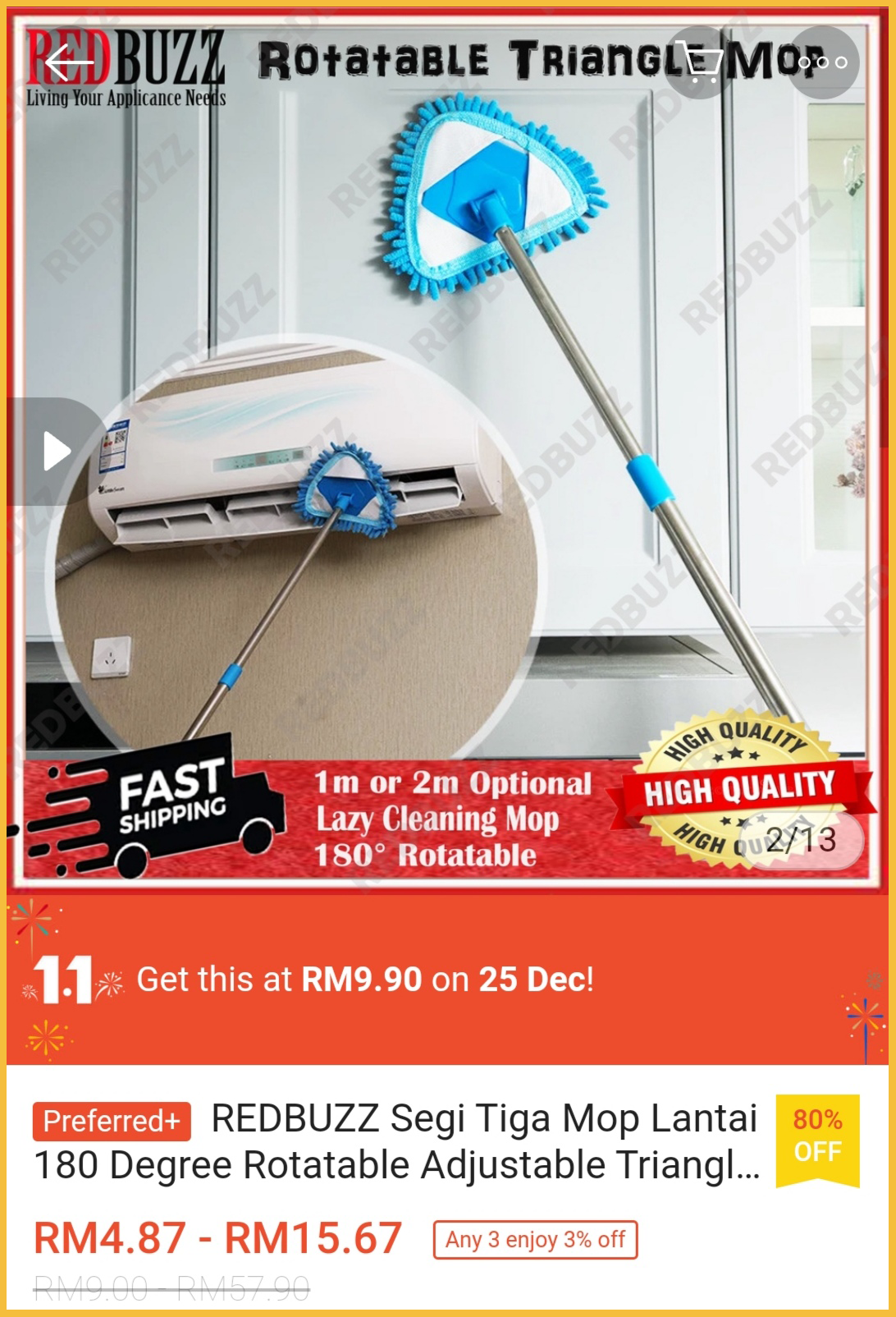180 Degree Rotatable Adjustable Triangle Cleaning Mop – RM9.90