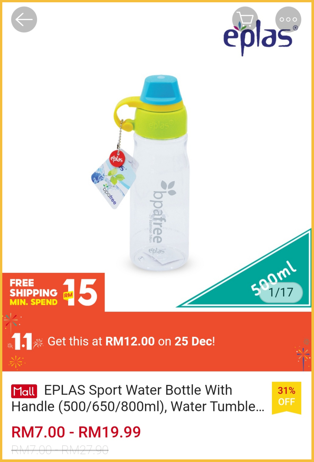 EPLAS Sport Water Bottle With Handle 500MLRM15.99 RM12