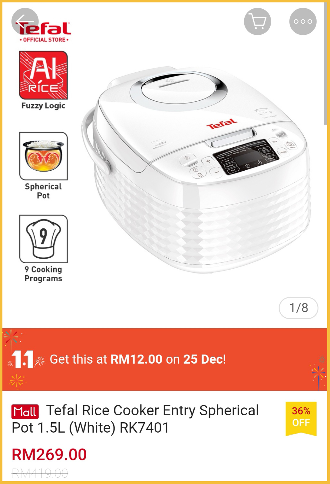 Tefal Rice Cooker Entry Spherical Pot 1.5L – RM269 RM12