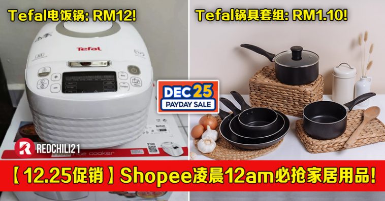 Shopee 【12.25】发薪日大促销即将来临了,在这天除了有推出RM25 超值商品之外,还推出家具用品限时优惠,最低RM1.10起!