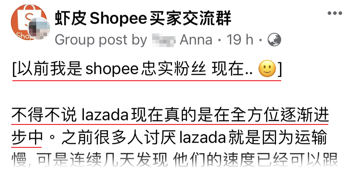 近日一名大马买家在“虾皮买家交流群”PO文直言,一直是 Shopee 忠实粉丝的她不得不夸夸 Lazada 最近的神速进步!