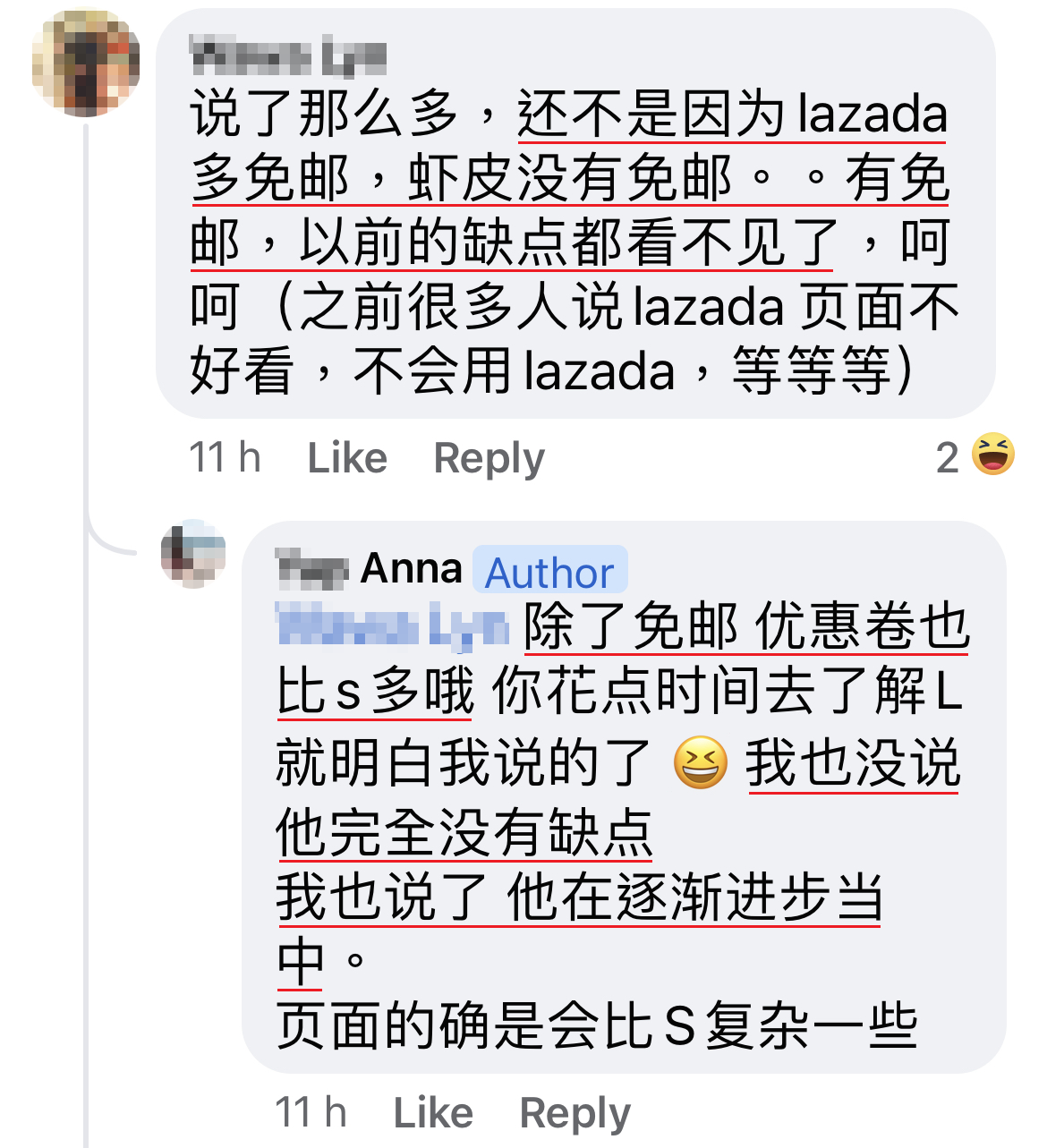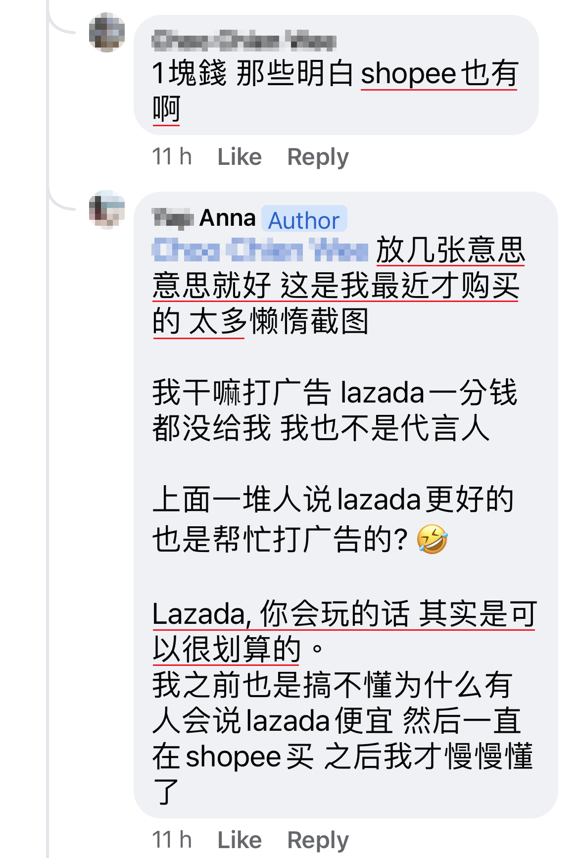 Lazada 又大方又时常做优惠活动,yyds!Shopee 大日子买几个小样的东西,省几块钱还是可以的。
