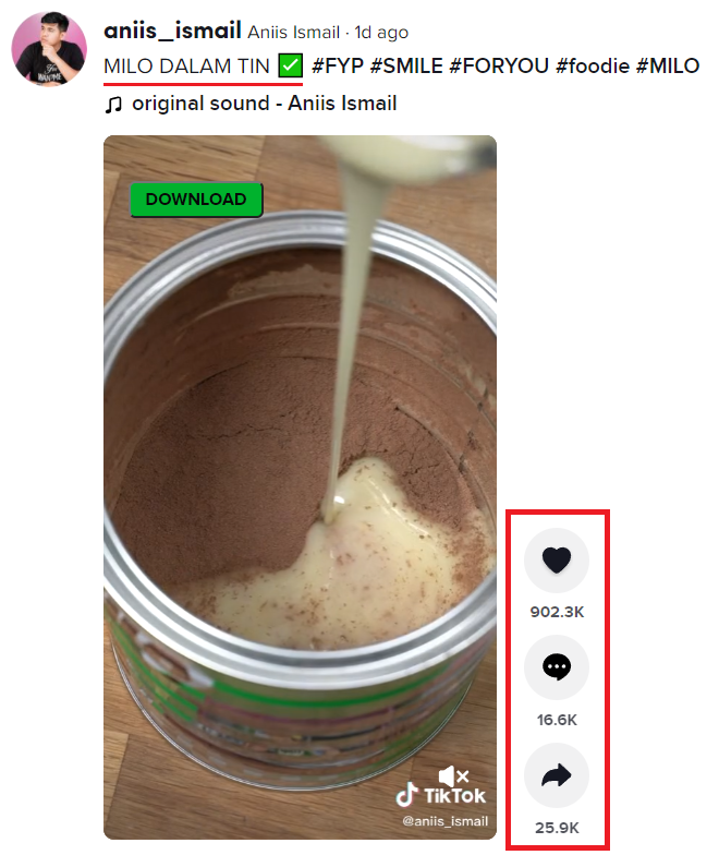 TikTok 有网友就进行了一项超疯狂的挑战:冲泡一 “tin” 的 Milo 然后直接喝了!