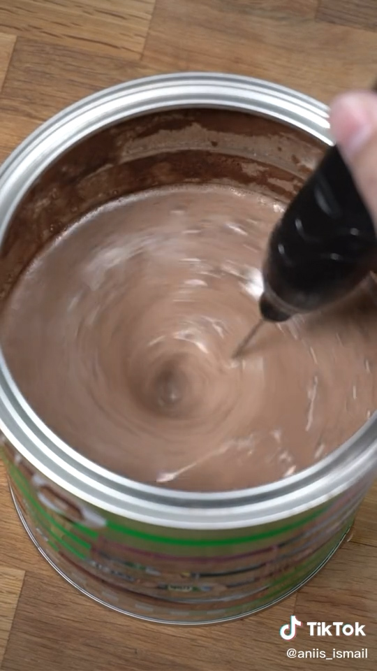 ▼ 这罐 Milo “太大杯”了,如果用汤匙搅拌太费力,所以直接用电动搅拌器。
