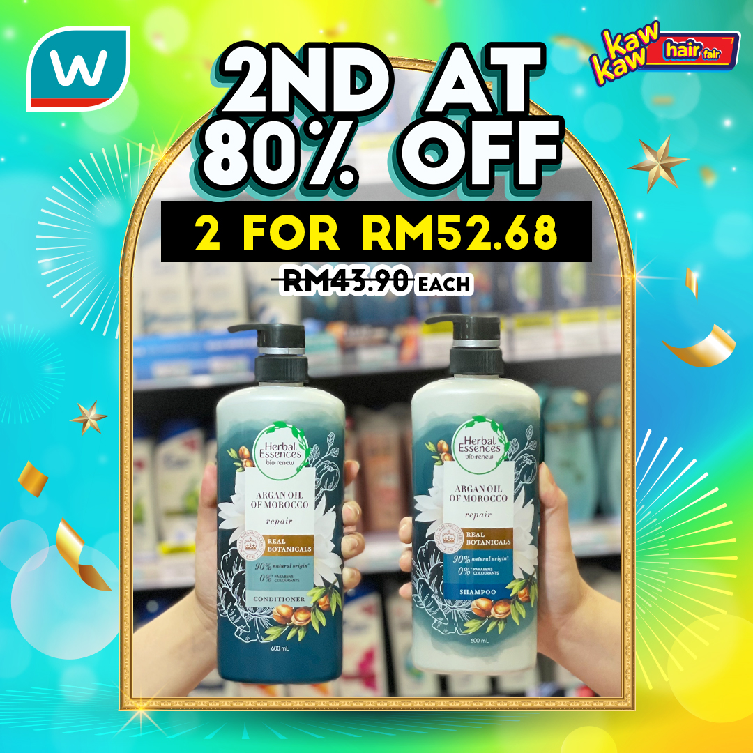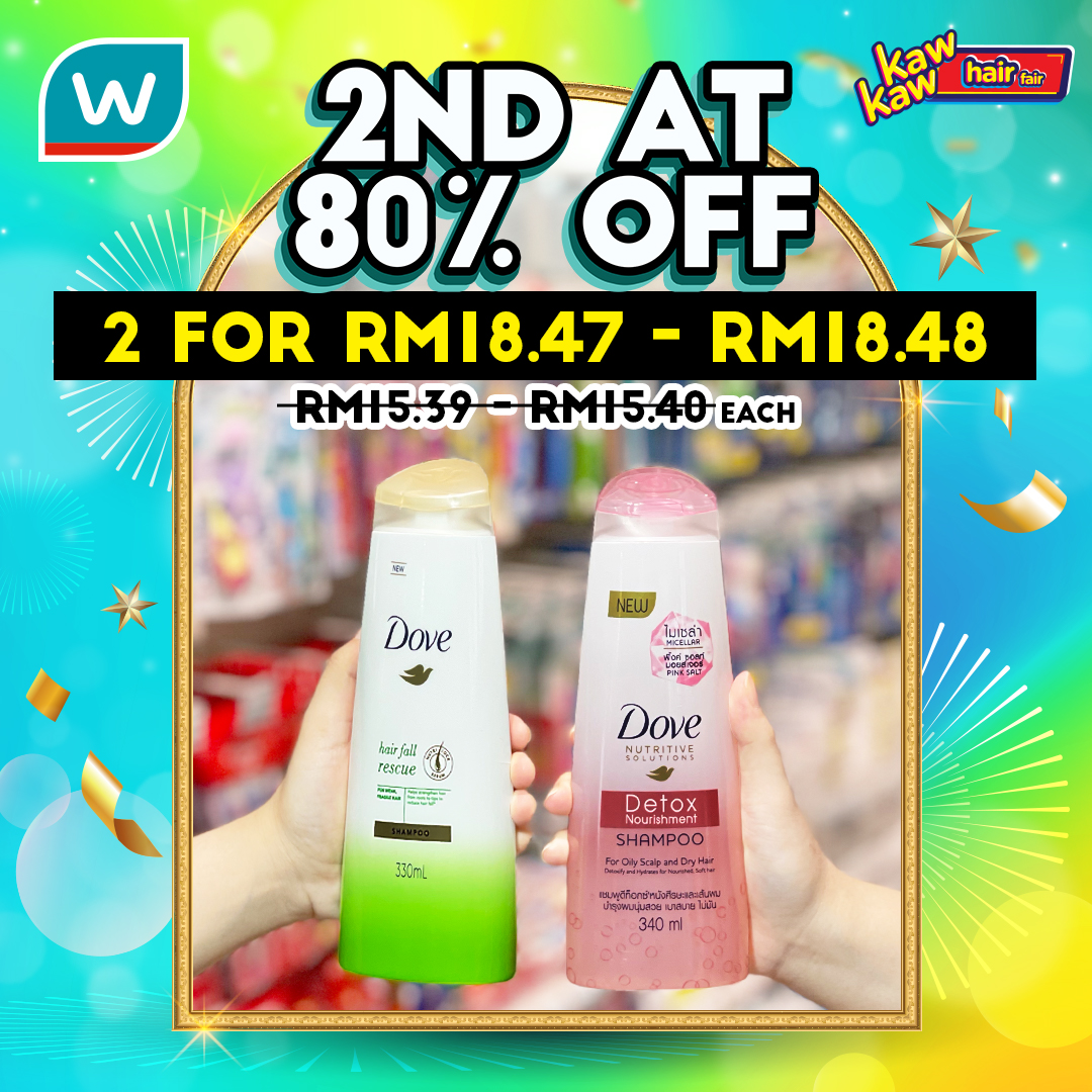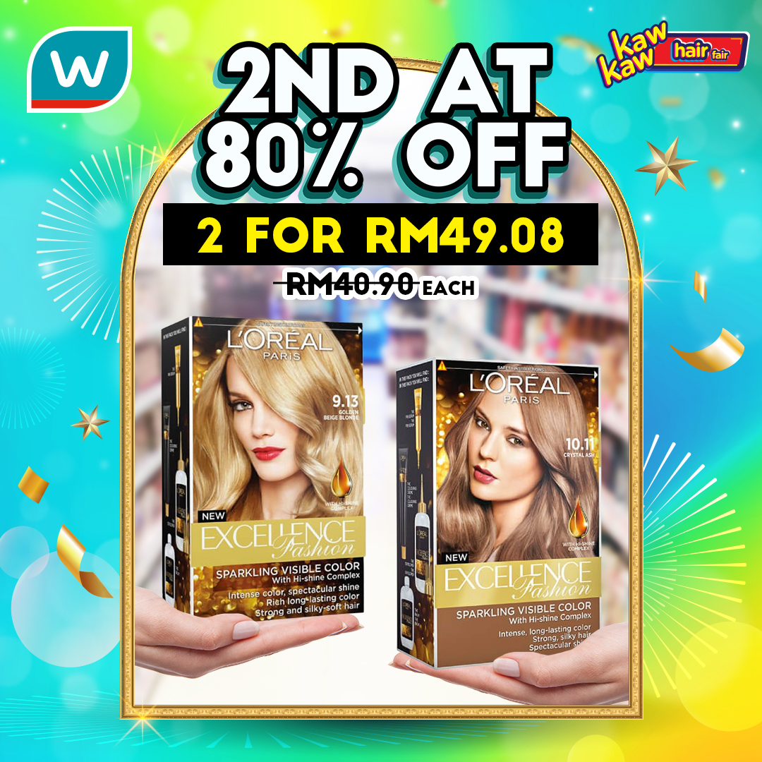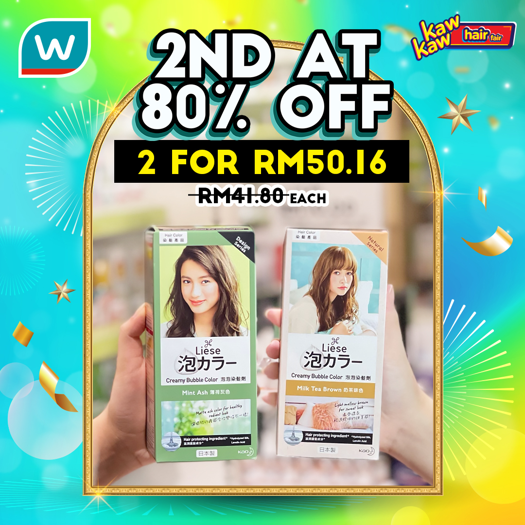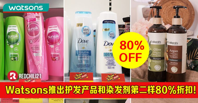 如今Watsons 推出各种品牌的护发产品和染发剂大优惠!第二样80%折扣!