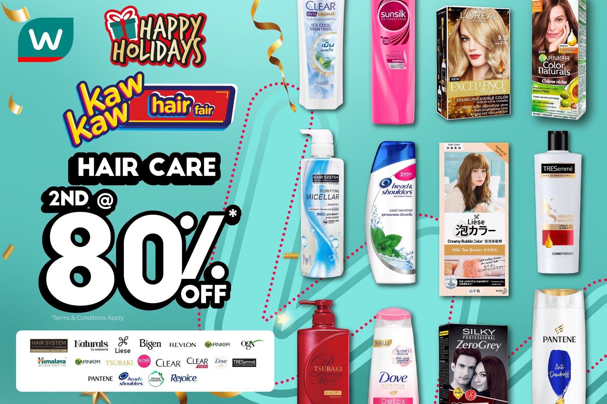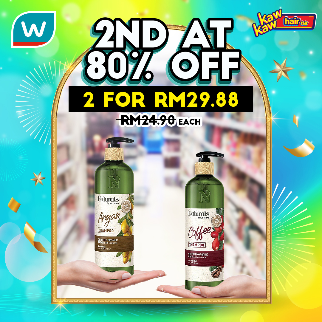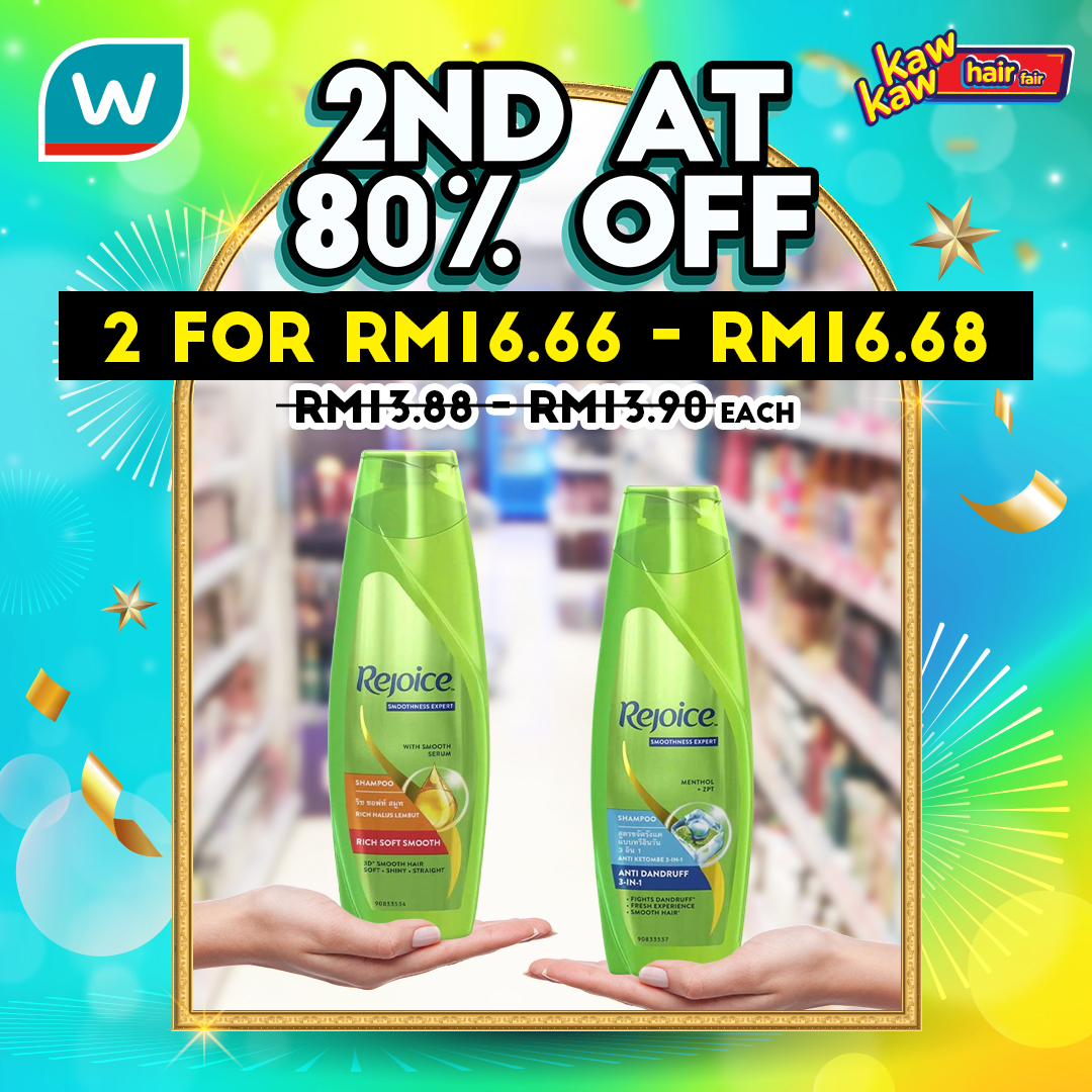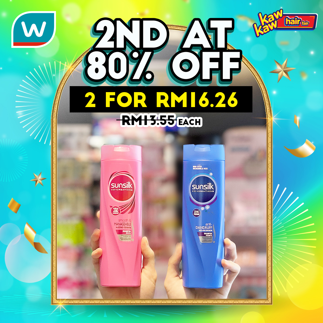 如今Watsons 推出各种品牌的护发产品和染发剂大优惠!第二样80%折扣!