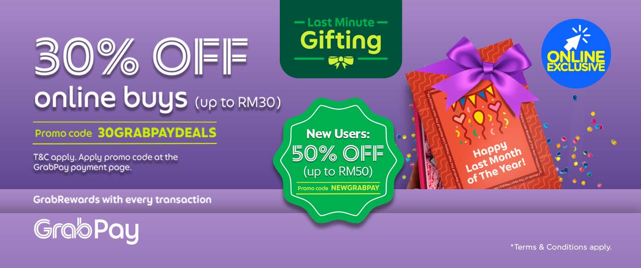 - 30%折扣 – 优惠代码【30GRABPAYDEALS】仅限现有用户