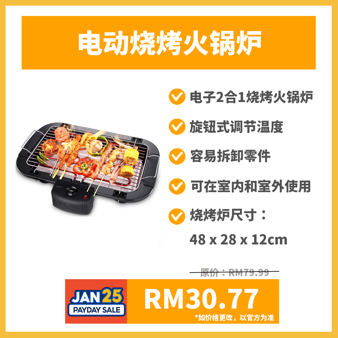 以上几款烧烤火锅炉的特别优惠价是在1月25日当天凌晨12am 推出!你可把商品加进购物车,到时直接下单就行啦!