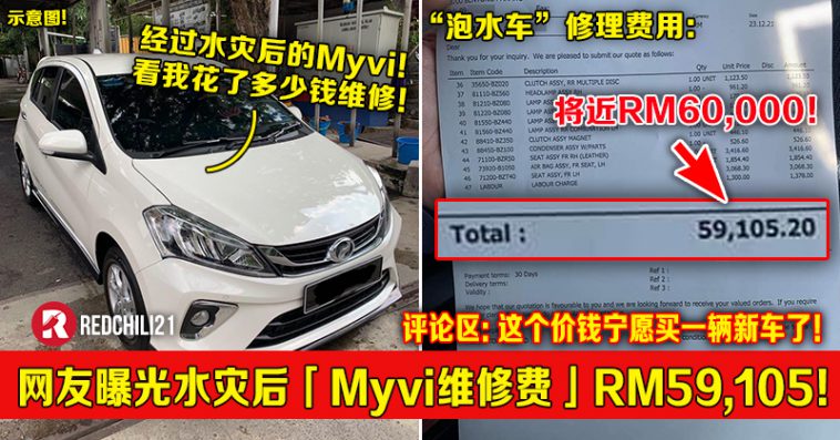 近日一名网友在脸书曝光水灾后维修车子的花费,竟然比买一辆全新的车还贵!维修总费用将近RM60,000!