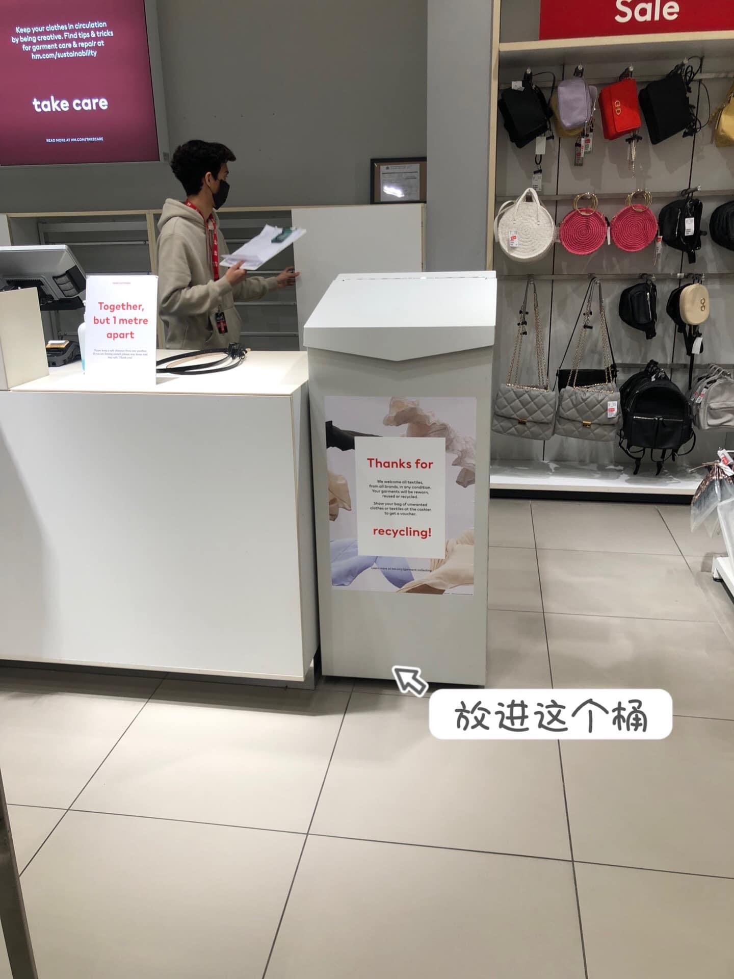 Step 2:去到 H&M 的柜台就会看到这个 recycle 桶,告诉柜台的人一声然后放进去就可以了。