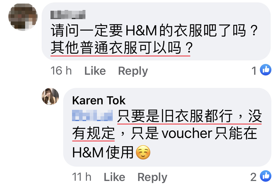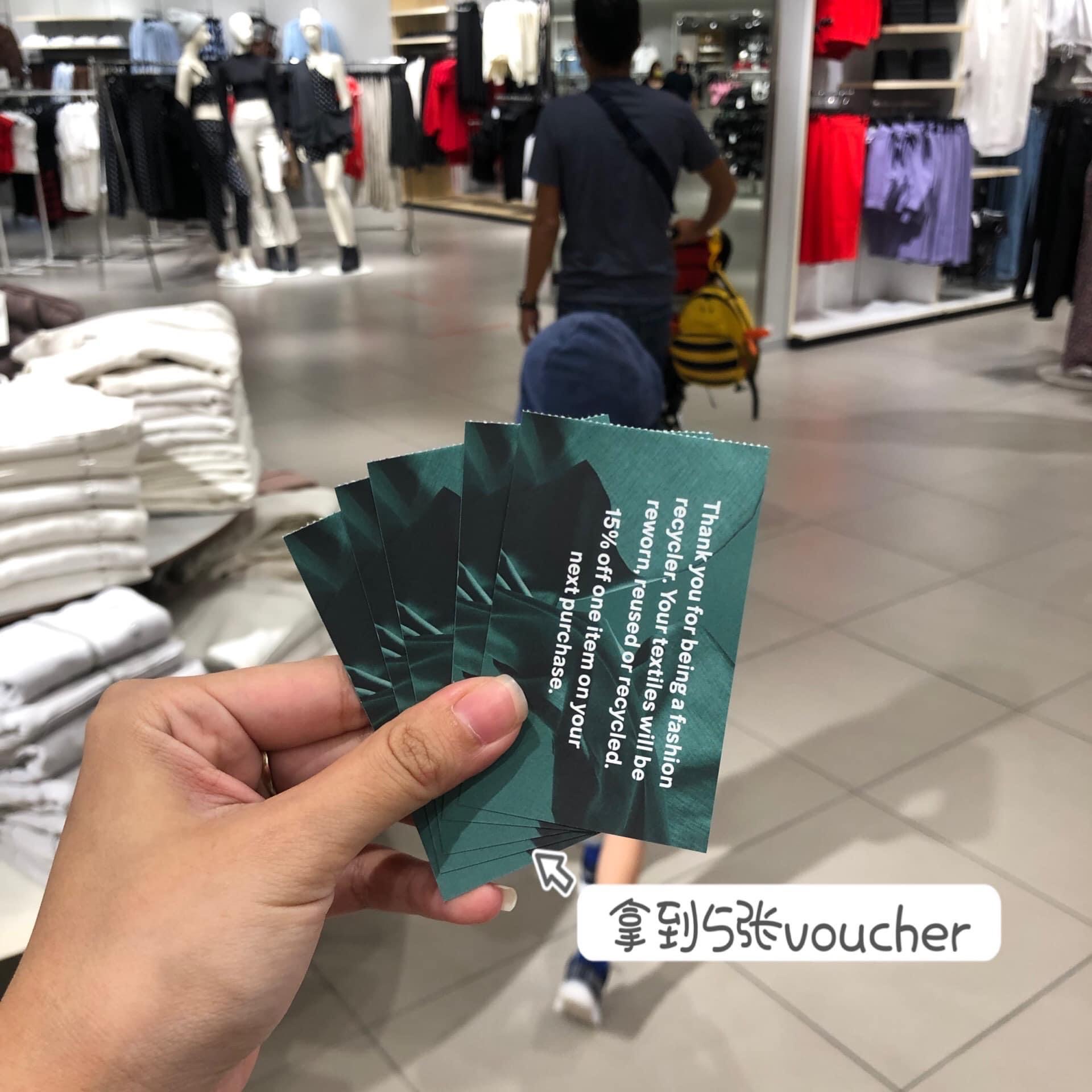 - 拿去 recycle 的衣服没有规定要他们家牌子,只是 voucher 只能买 H&M 衣服。
