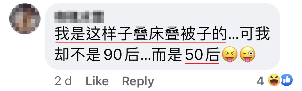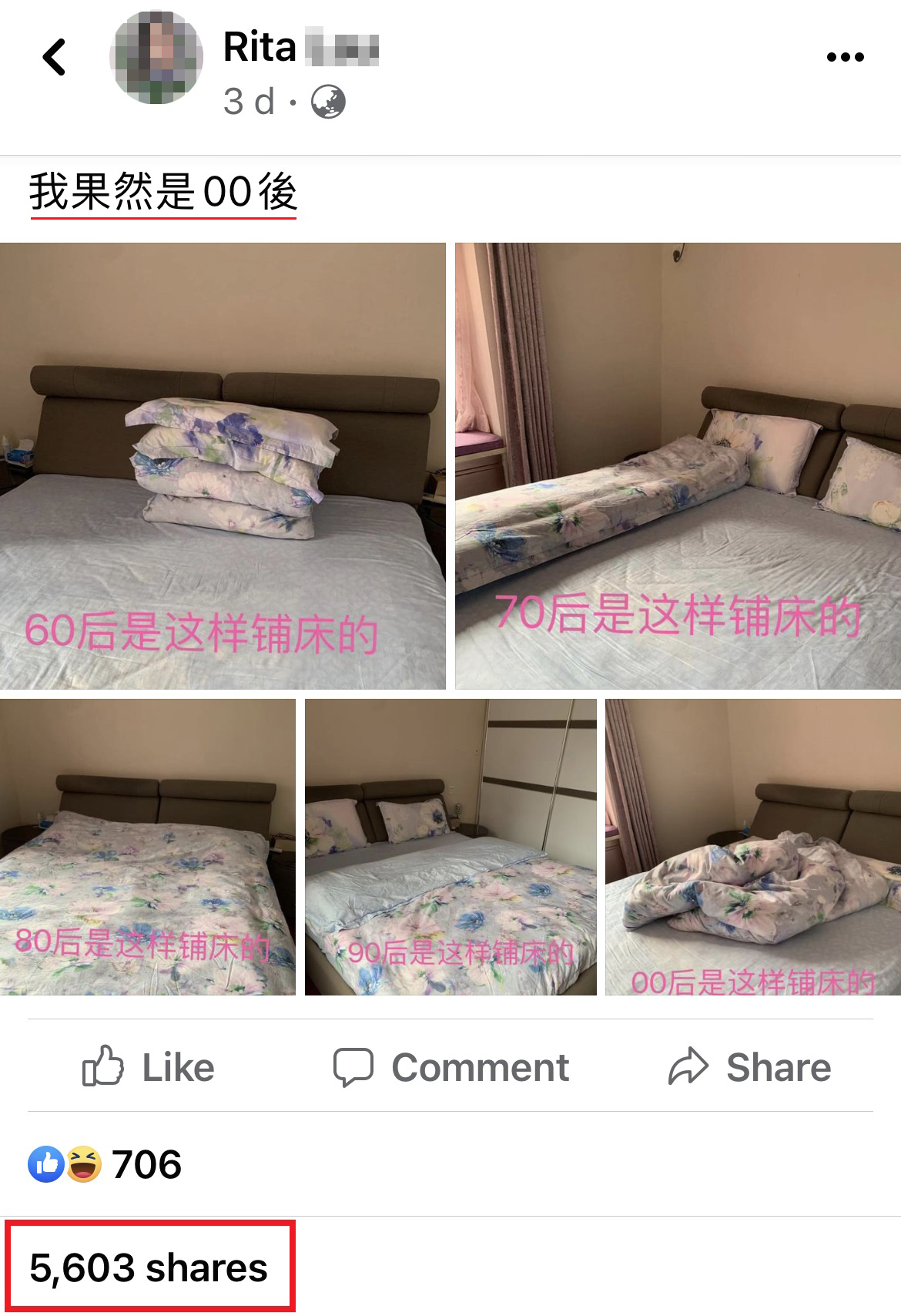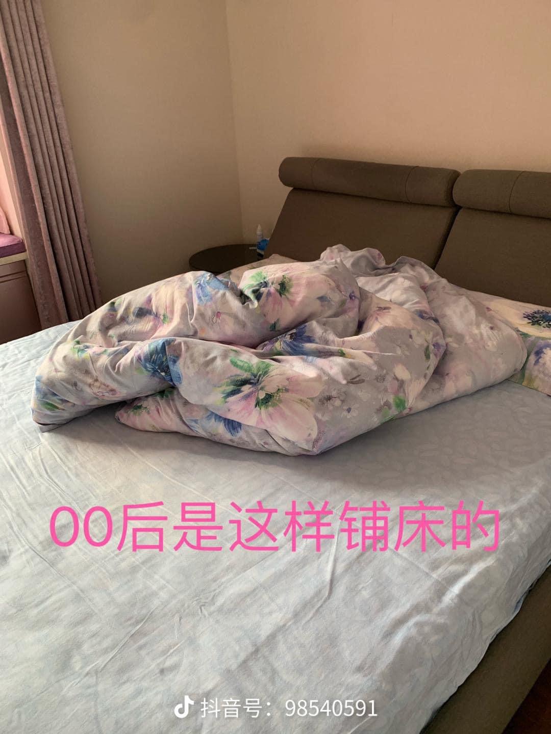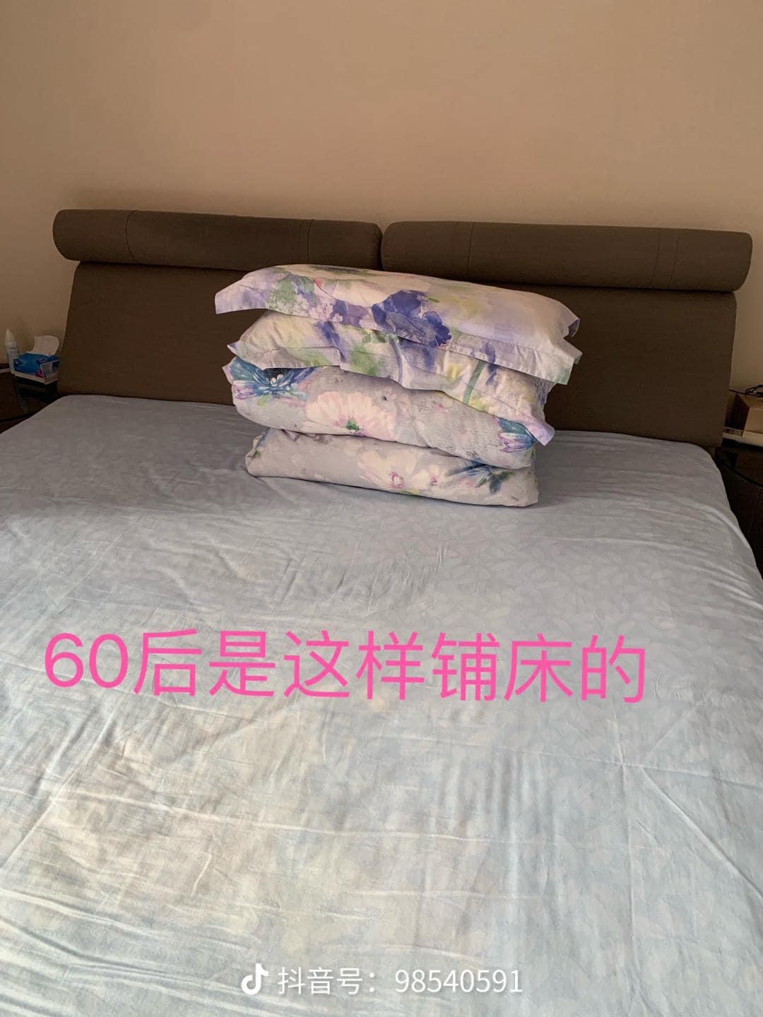 一名大马网友近日在脸书上传数张来自抖音的照片,从60后以至于到00后的铺床方式,经过网友们认证以后纷纷都惊叹地表示:能不能不要这么准?!