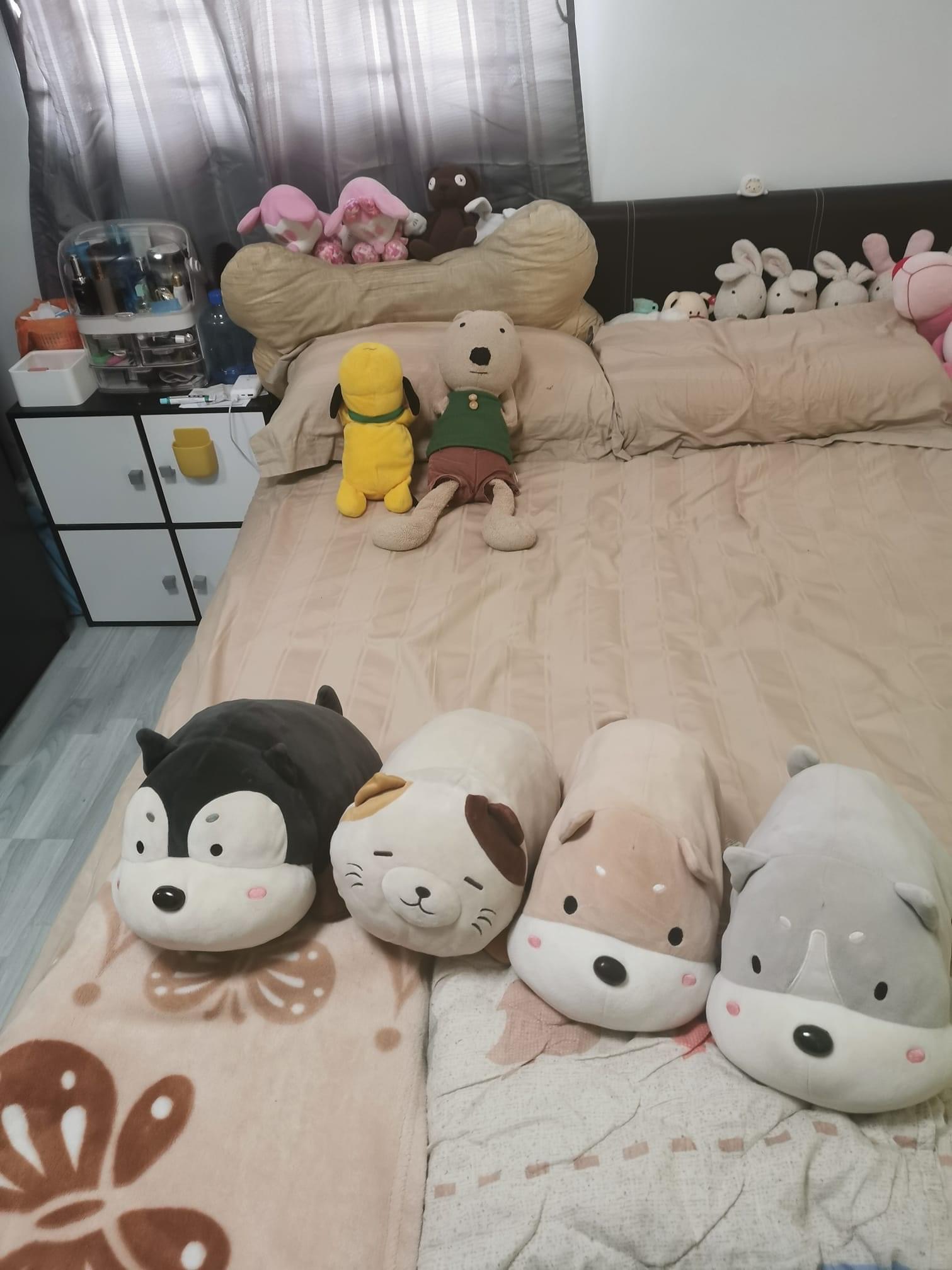 ▼ 另一种则是:床上摆满各种可爱的玩偶。