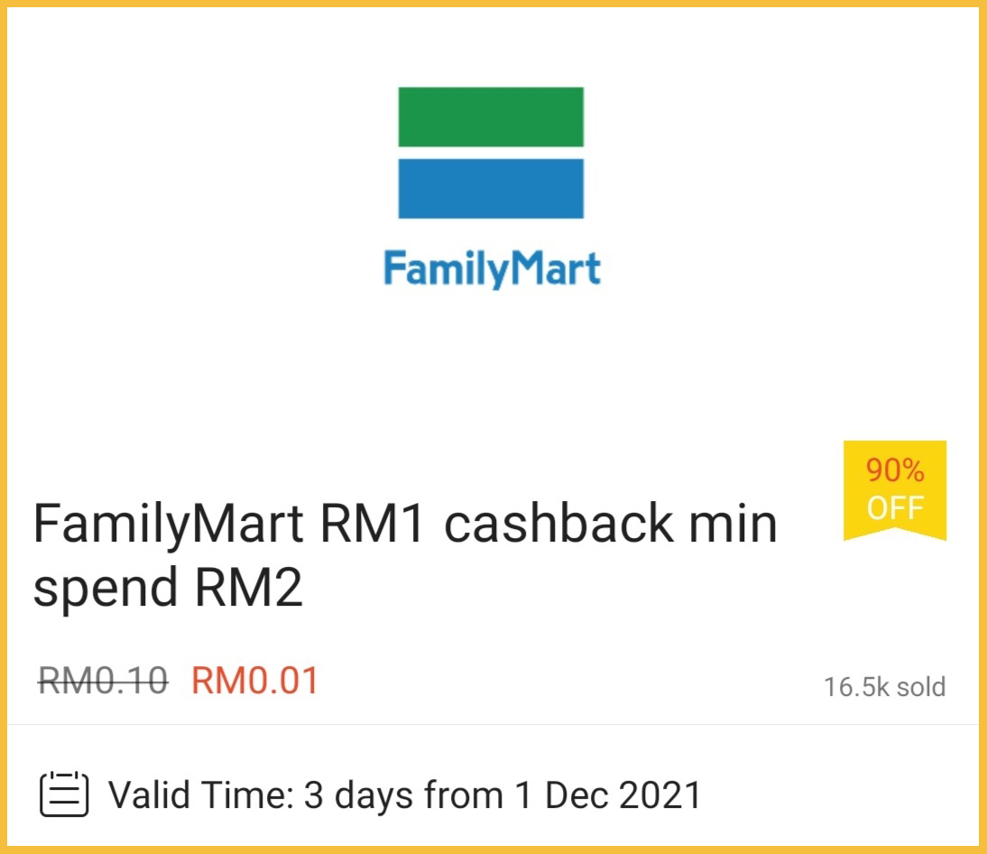 ▼ 别忘了,通过Shopee App 购买FamilyMart 礼券可享有RM1 折扣!