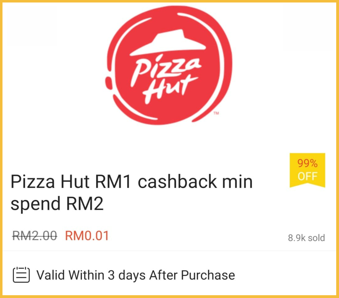 ▼ 别忘了,在Shopee App 购买Pizza Hut 礼券可获得RM1回扣!最低消费RM2!