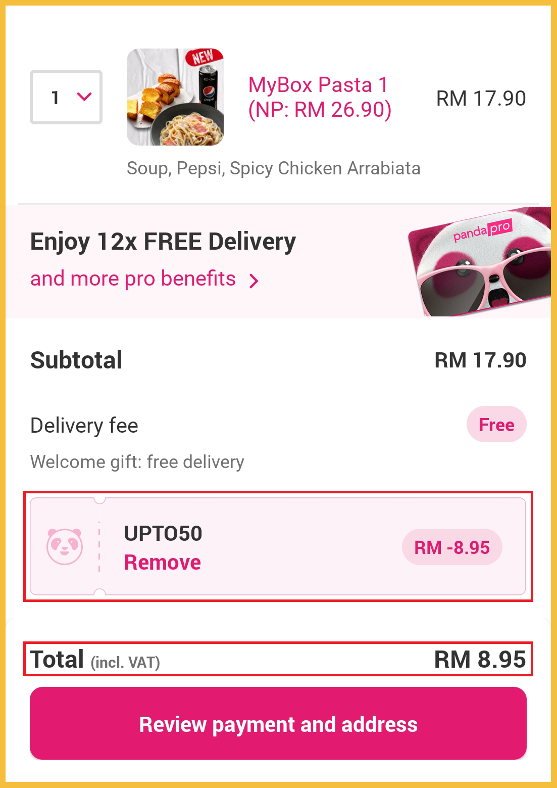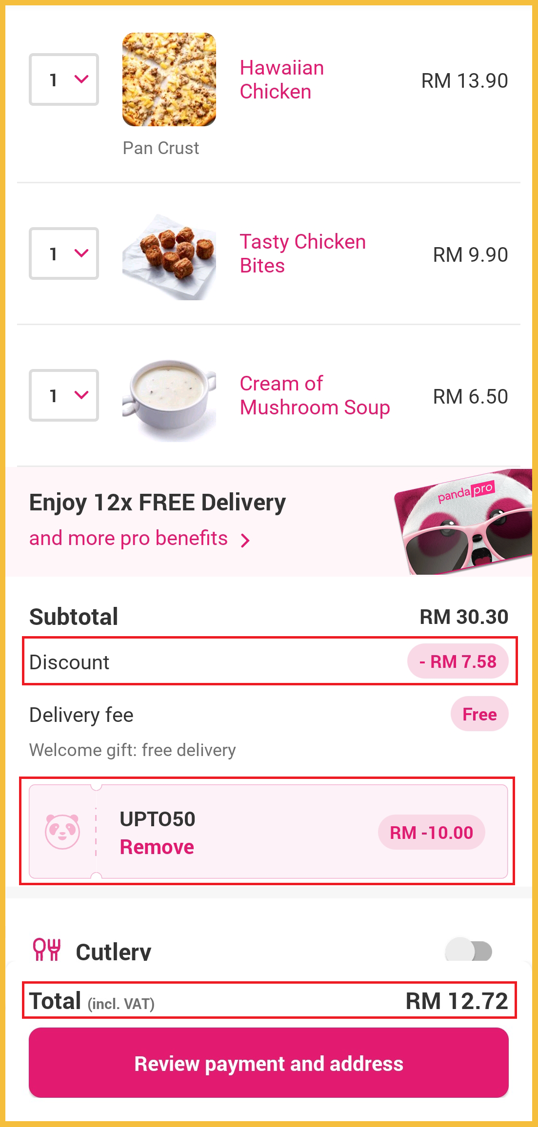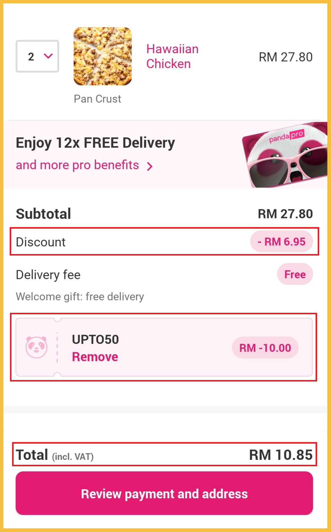 那就是使用Foodpanda App 来订购Pizza Hut 啦!另外搭配【UPTO50】这个50%优惠代码可享有RM10 折扣哦!