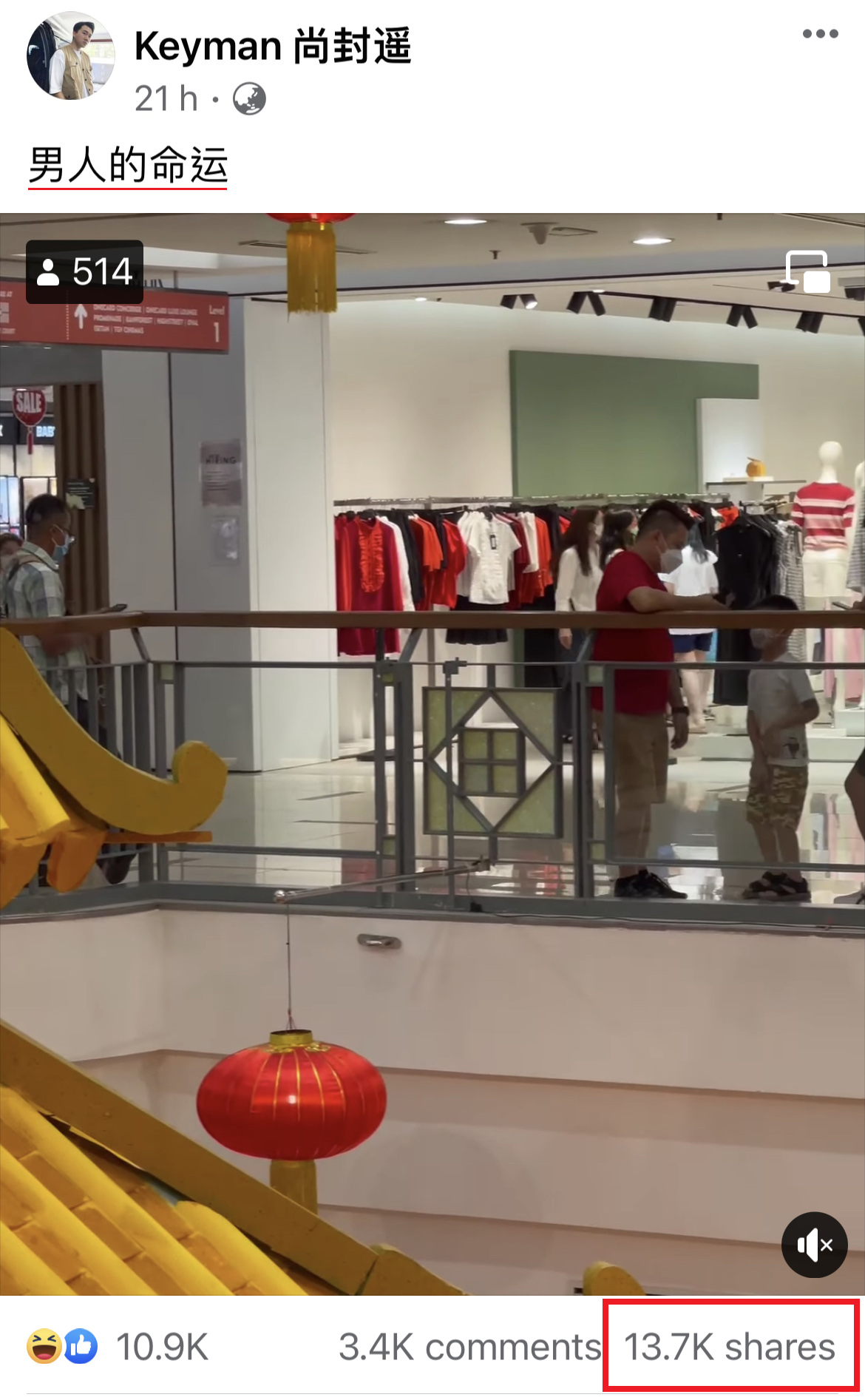 与此同时,这样的场景也一定会出现在每一家 Shopping mall!短短不到1天内该视频就累计多达13,700次分享,不得不说真的太有共鸣了!