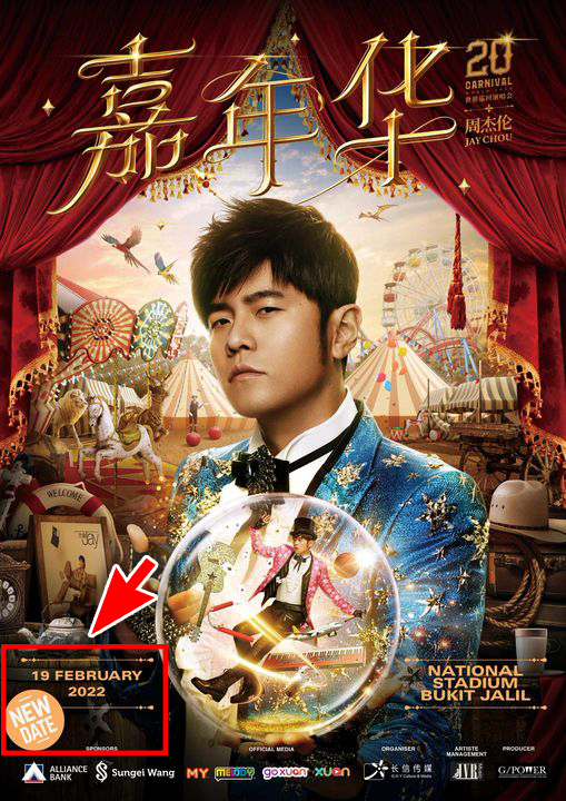 ▼ 周杰伦《嘉年华》巡演大马站第二次宣布延迟,当时更新的日期是2022年2月19日。