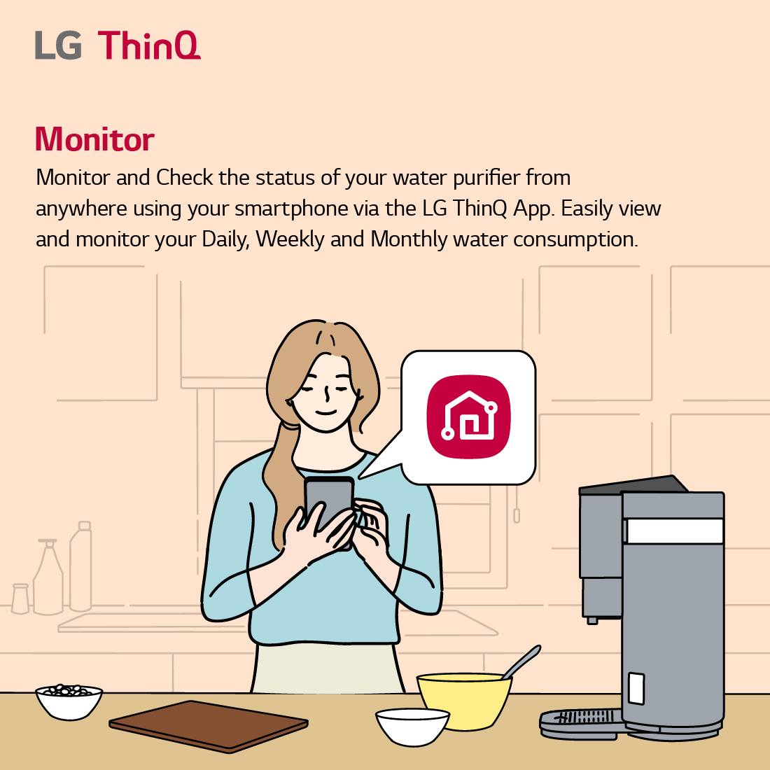 消费者可在智能手机上下载 LG ThinQ™ 应用程序来监控净水机的用水量,并通过诊断模式来检测净水机的任何状况,同时也可通过 App 调控空气净化机的各项功能。超方便的!
